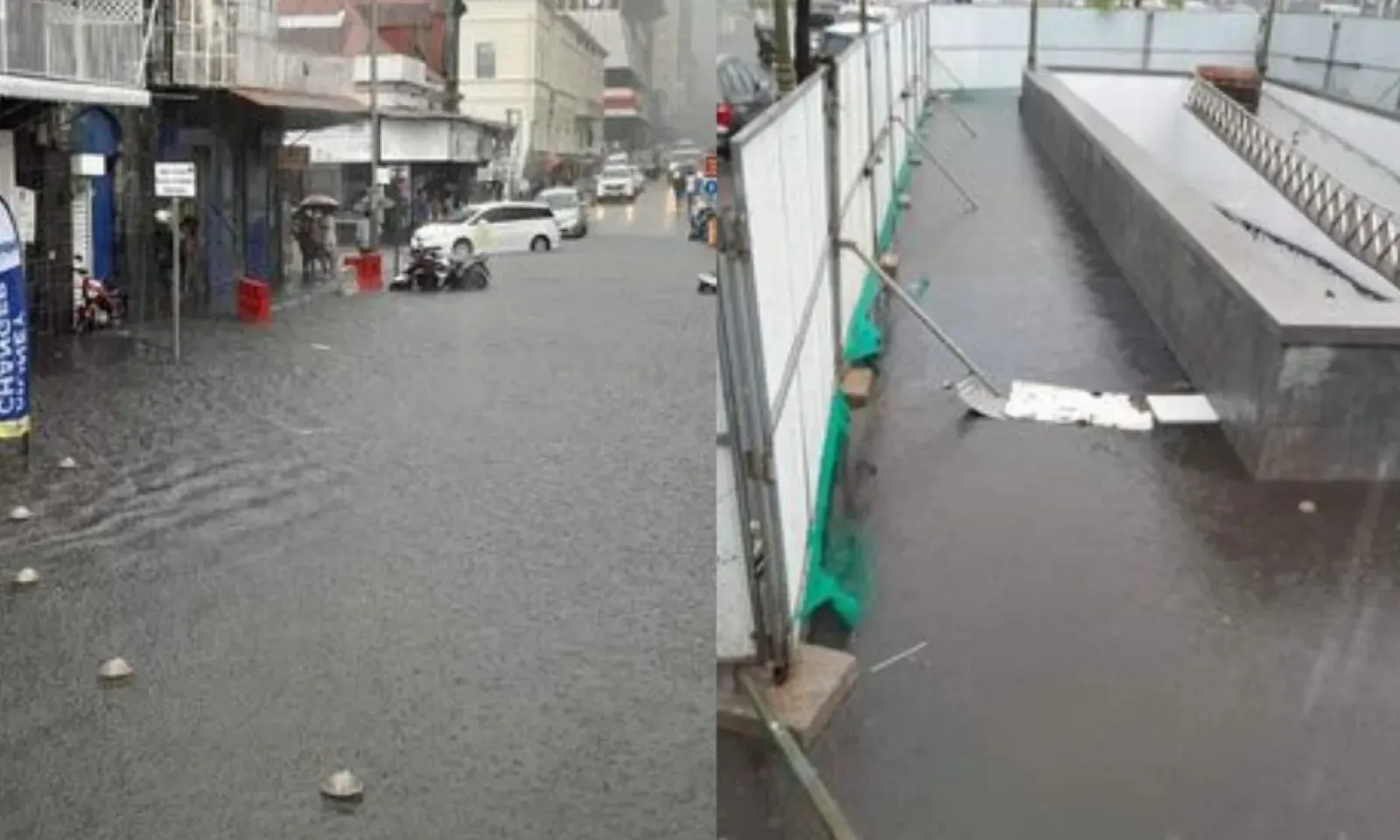Des accumulations d’eau sont signalées en ce moment à l'entrée du Port-Louis Waterfront.