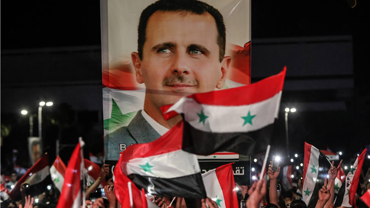 A Damas, des milliers de partisans de Bachar al-Assad se sont rassemblés sur la place des Omeyyades, agitant des drapeaux syriens et des portaits du président, scandant des slogans à sa gloire et dansant.