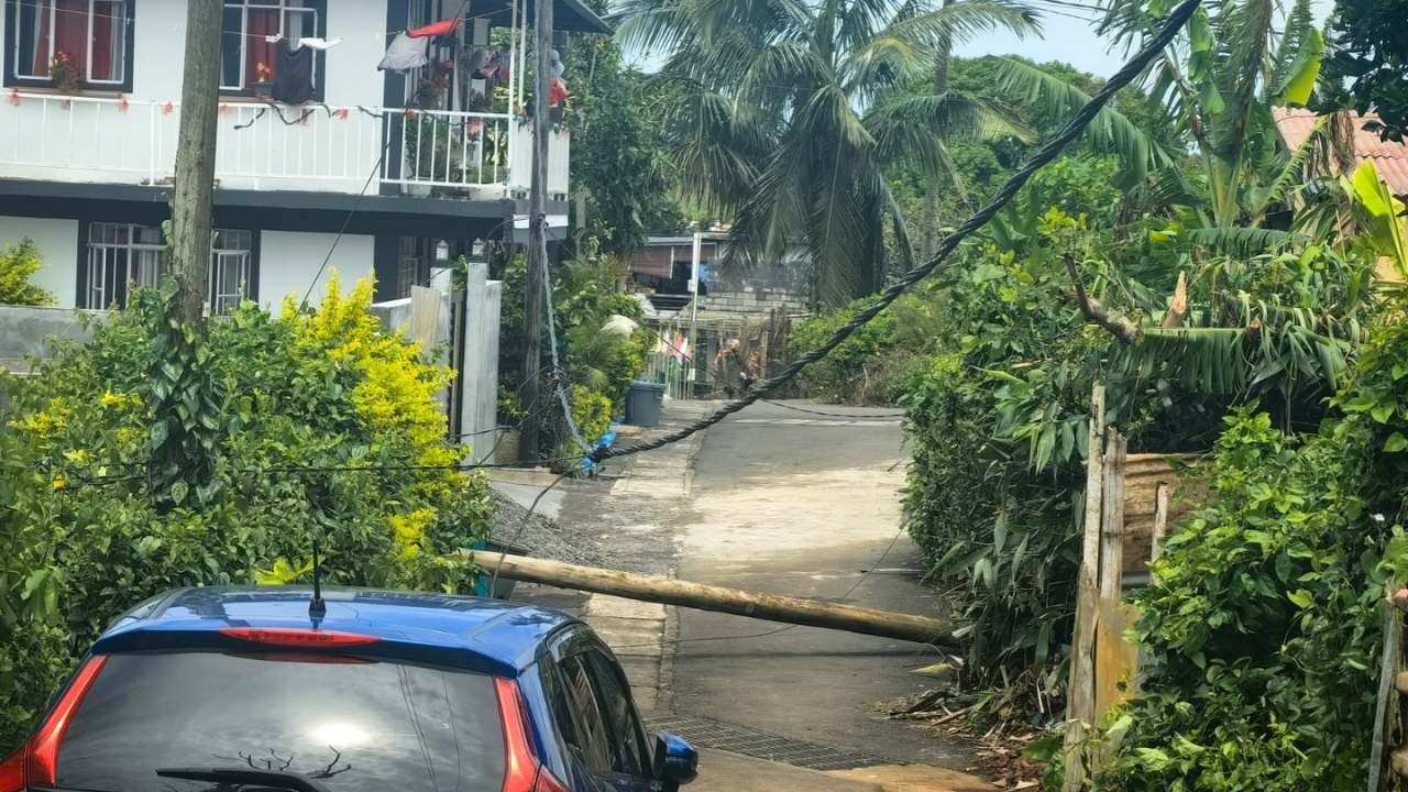 Un pylône est tombé à Batimarais dans le sud de Maurice à la suite du cyclone Belal le 15 janvier. L'accès est bloqué, empêchant certaines familles de sortir avec leurs voitures. Avis aux autorités de prendre les mesures nécessaires !