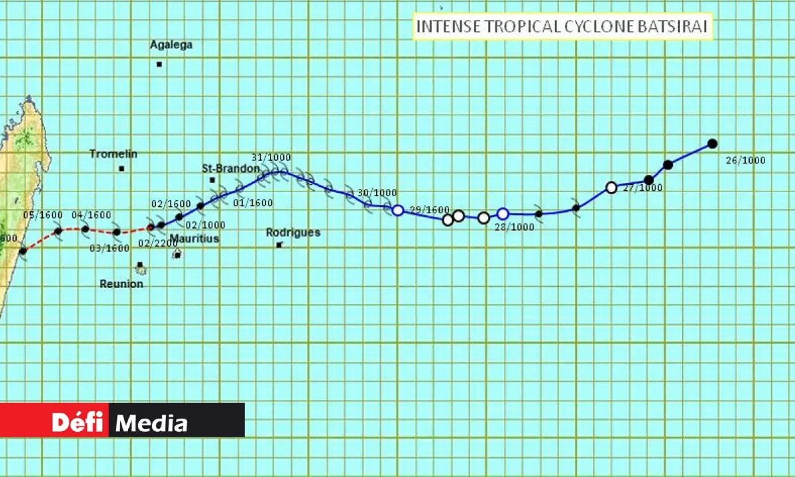 Le cyclone tropical intense Batsirai a considérablement ralenti sa course ces dernières six heures. « A 04 h 00, il était centré à environ 220 km au nord-ouest de Maurice en latitude 19,0 degrés sud et longitude 55,6 degrés est. Il se déplace maintenant dans une direction de l'ouest-sud-ouest à une vitesse d'environ 10 km/h », explique le service météo.