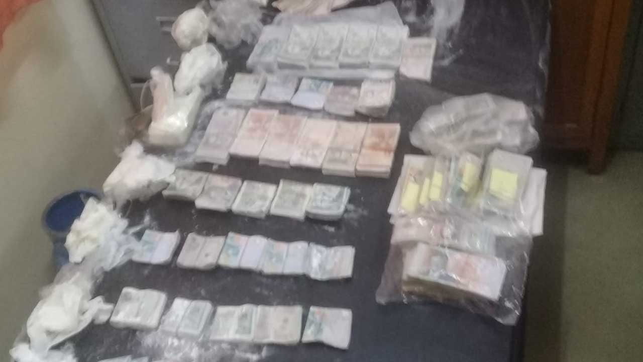 Suivant des renseignements précis, les limiers ont pénétré dans une pièce, fraîchement peinte, et ont défoncé la base d’un mur en béton. À l’intérieur se trouvaient plusieurs liasses de billets dissimulées dans des sacs en plastique. Cette fouille a également permis aux enquêteurs de mettre la main sur 50 doses d’héroïne.