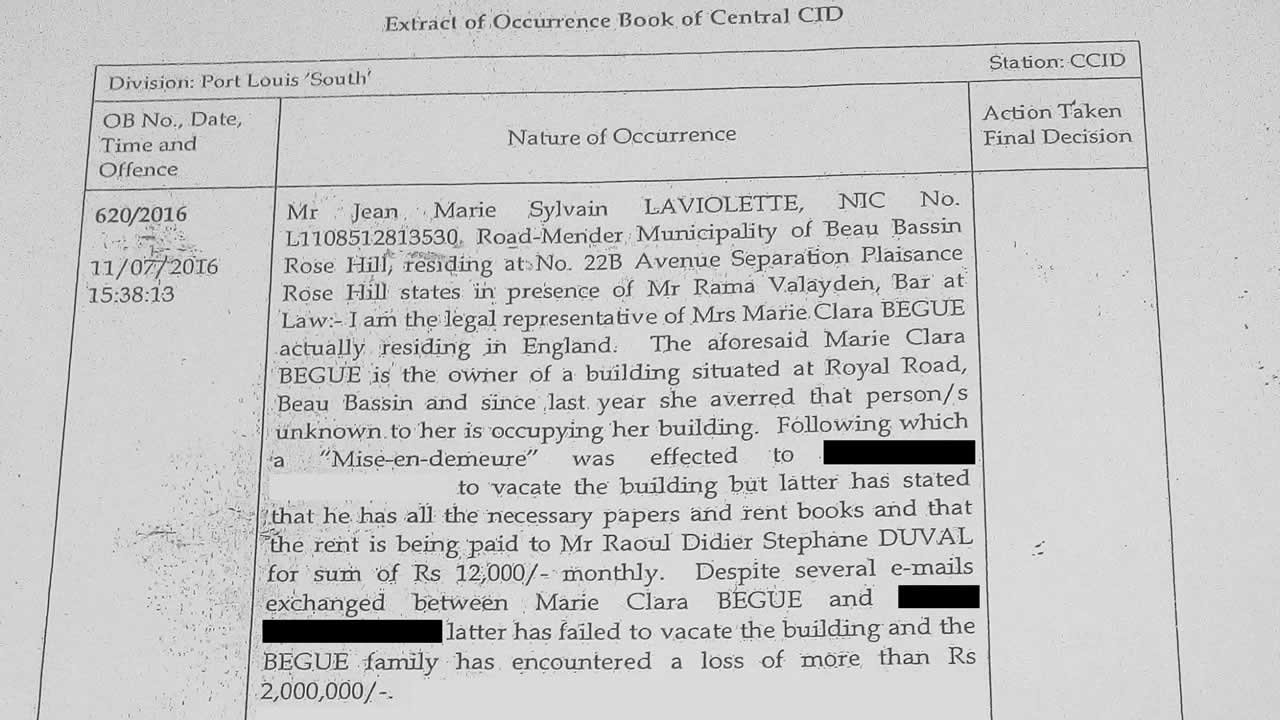 Ces informations peuvent être vérifiées sur l’Occurence Book (OB) du Central CID de Port-Louis.