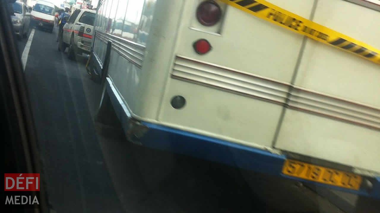 Le bus impliqué dans un accident de la route après un match de football à Bel-Air-Rivière-Sèche dimanche 16 octobre, ayant été provoqué par un supporter qui a exhibé son sexe, n’a pas été enlevé de la route.