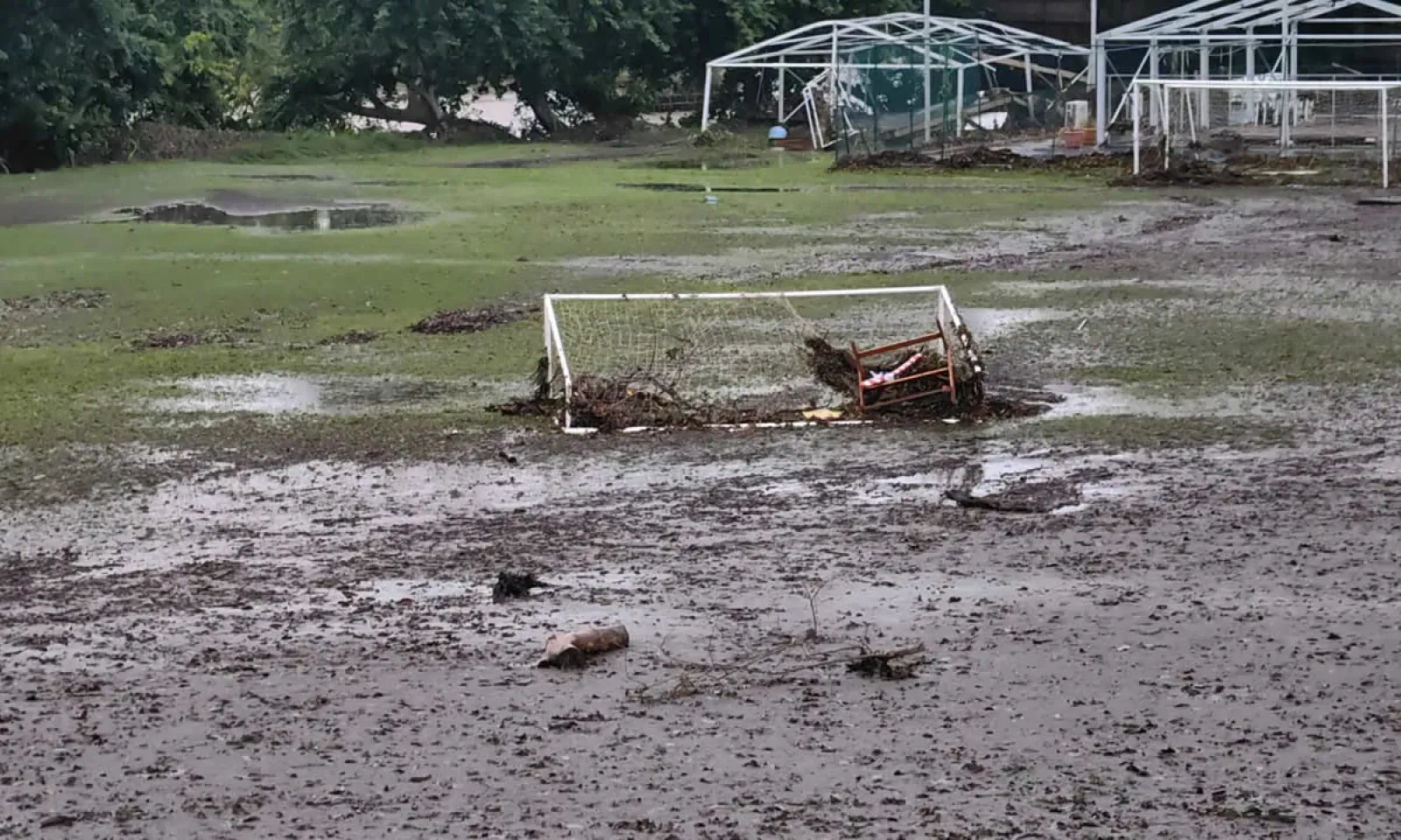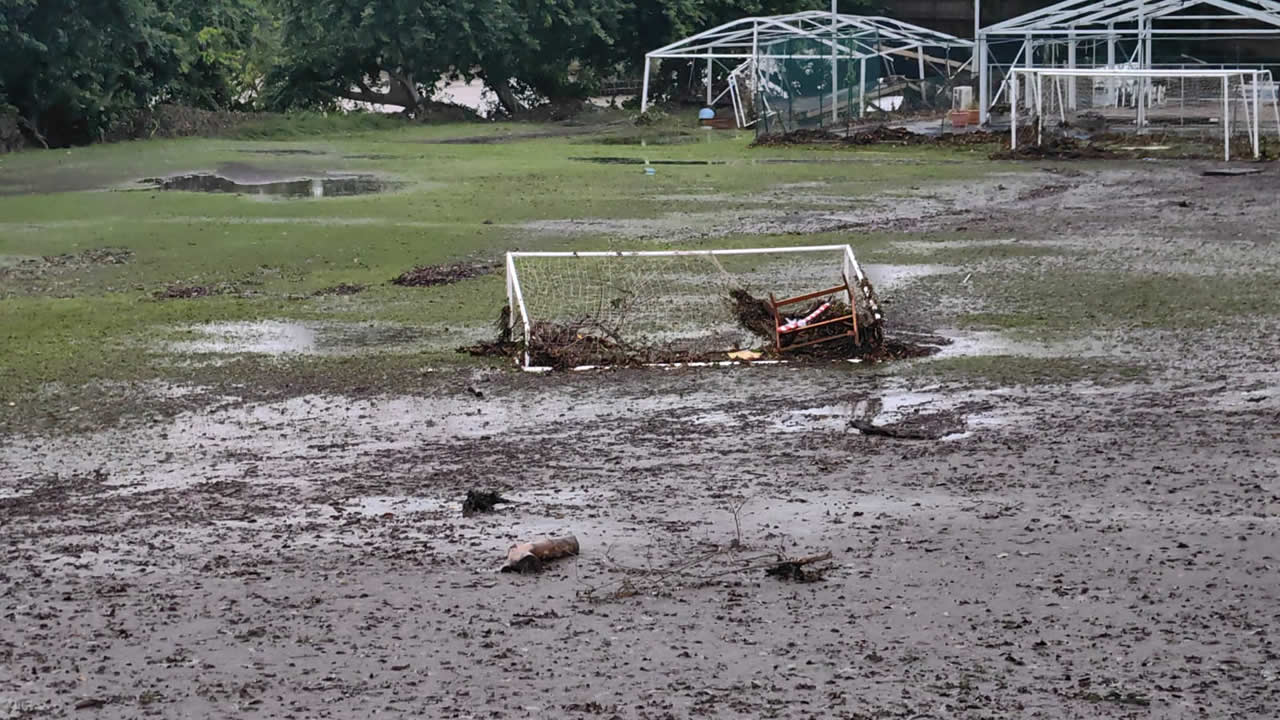 Le terrain de football et de rugby de Riverland à Tamarin est dans un triste état : structures endommagées, boue accumulée, herbe abîmée… Il a été victime des pluies torrentielles provoquées par le cyclone Belal, ce lundi 15 janvier 2024.