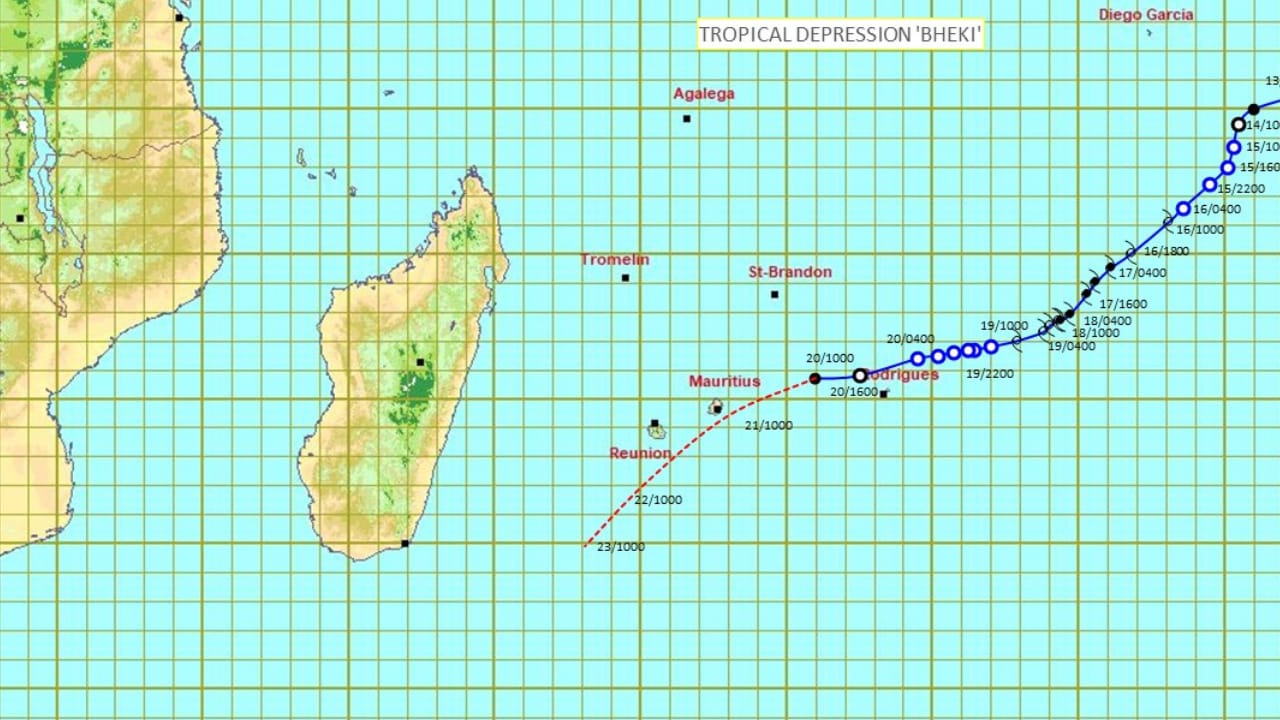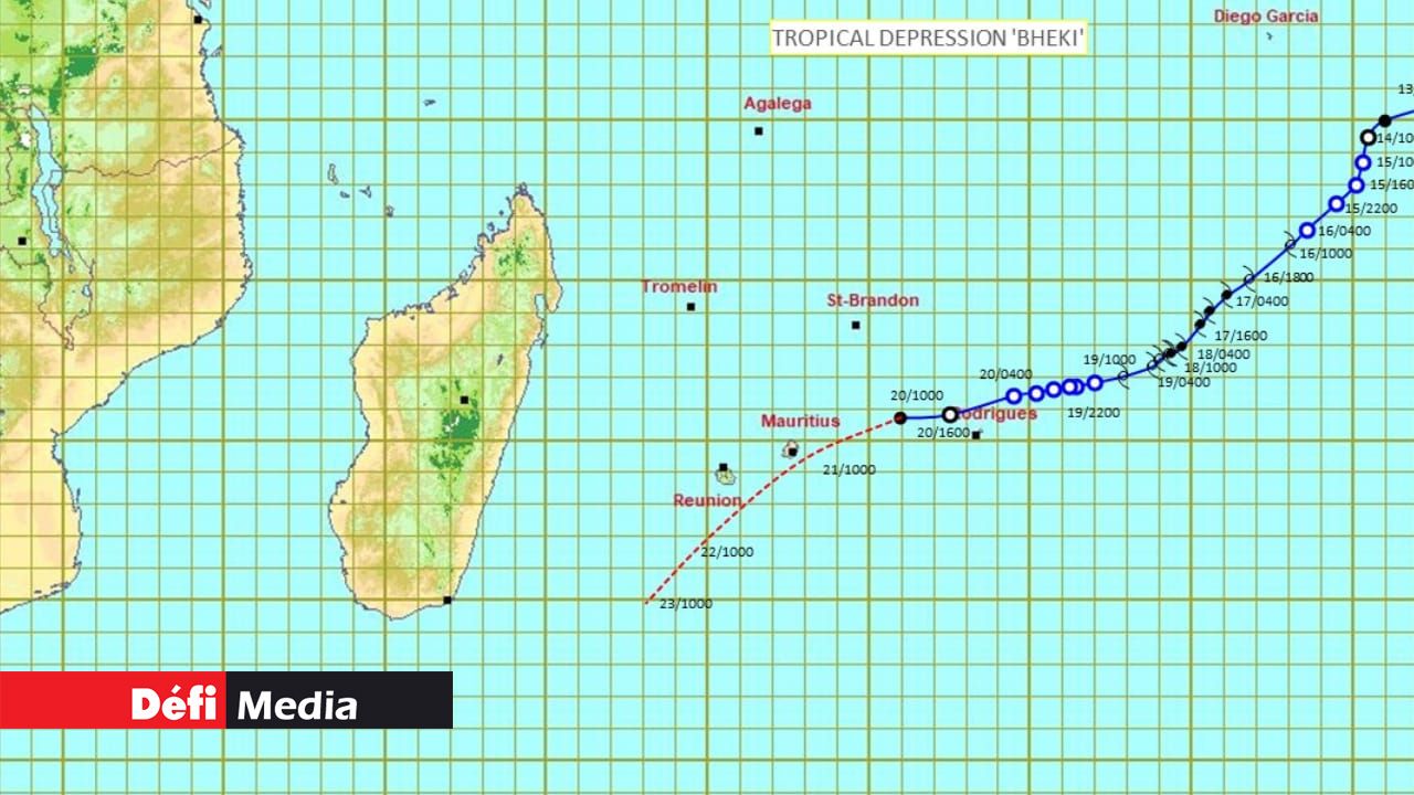 À 16 h, la dépression tropicale Bheki se trouvait à environ 375 km à l’est-nord-est de Maurice, se déplaçant vers l’ouest-sud-ouest à une vitesse de 20 km/h. Des nuages associés à ce système continueront d’influencer le temps avec des averses passagères, parfois modérées à fortes, accompagnées d’orages isolés.