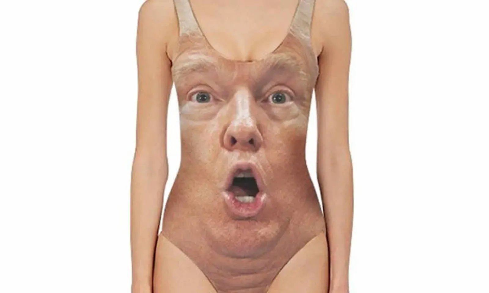 Une société californienne fait des vagues depuis la commercialisation d'un maillot de bain une pièce dont le motif n'est autre qu'une photo du visage du président américain Donald Trump.