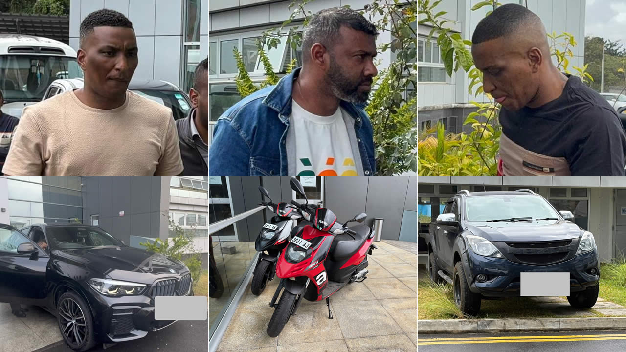 Chez Robby Baptiste (37 ans), résidant à Roche-Bois, les enquêteurs ont saisi une Suzuki Ertiga évaluée à Rs 754 000. L’avocat Mᵉ Shameer Hussenbocus assure sa défense. Quant à Roddy Baptiste, il s’est vu confisquer une motocyclette Aprilia valant Rs 103 000.
