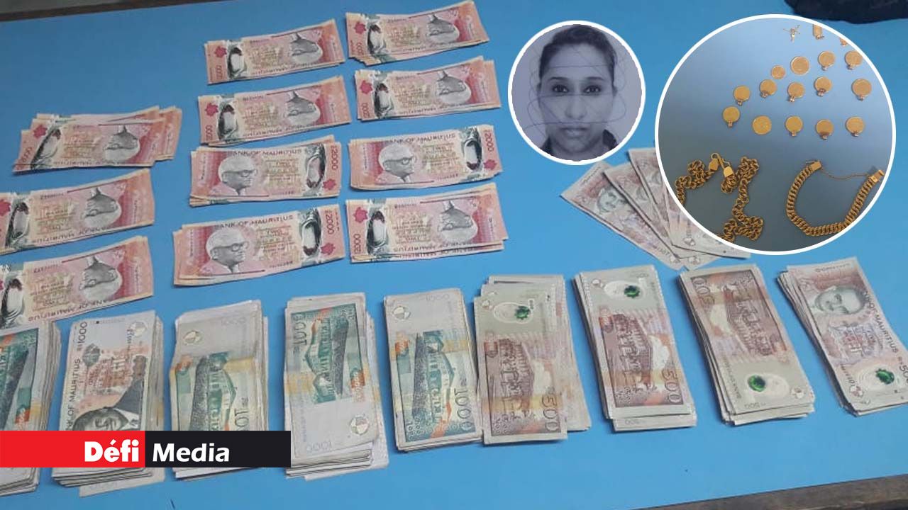 Farahnaaz Joomeer, 41 ans, a été arrêtée par les hommes du Chef inspecteur Seewoo, de l’Anti-Robbery Squad, aux petites heures de ce mercredi 18 mars. Cette habitante de Castel, à Phoenix, avait en sa possession une somme de Rs 860 500 ainsi que deux chaînes de type maille gourmette, 15 médaillons en métal jaune et des souverains. Ce butin était dissimulé dans un sac retrouvé au domicile de la suspecte.