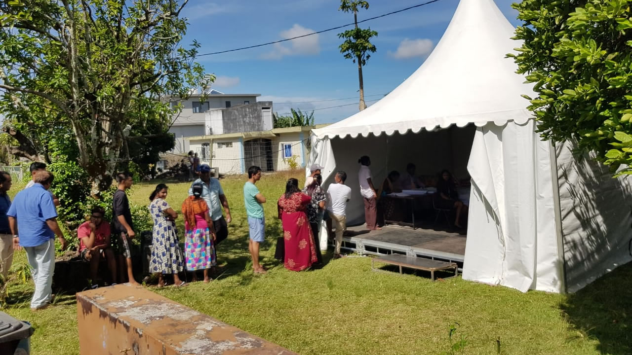 Scène inhabituelle dans l’enceinte de Notre-Dame de Bon-Accueil RCA qui remplace le centre de vote de Bon-Accueil State Secondary School, ce jeudi 7 novembre, dans la circonscription numéro 9 (Flacq/Bon-Accueil).