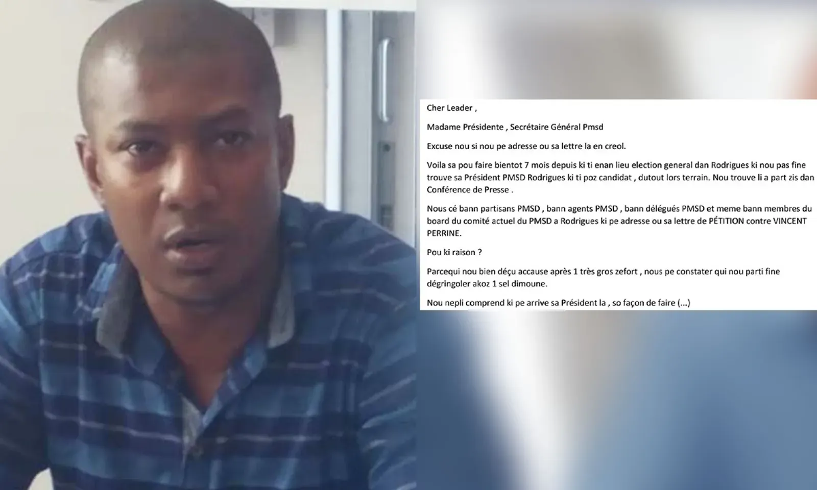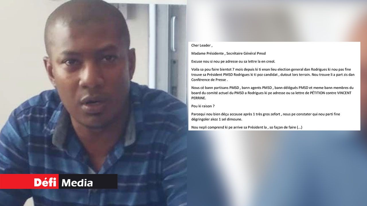Mahmad Kodabaccus dit être au courant d’une pétition envoyée au leader du PMSD, Xavier-Luc Duval, réclamant la révocation du leader du PMSD Rodrigues, Vincent Perrine. Selon le secrétaire général, le problème sera résolu « dans les heures qui viennent ». Le PMSD veut contribuer à améliorer la vie des Rodriguais, dit-il.