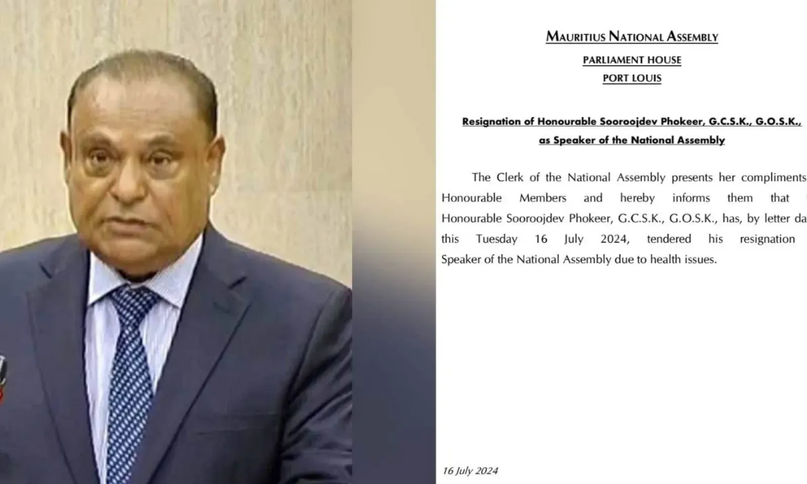 Le Speaker de l’Assemblée nationale, Sooroojdev Phokeer, a soumis sa démission en début de soirée ce mardi pour des raisons de santé. C’est ce qui ressort d’un communiqué émis par l’Assemblée nationale ce 16 juillet.