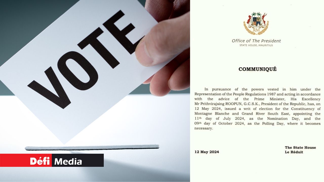 Le président de la République, Prithivirajsing Roopun, a émis ce dimanche 12 mai un Writ of Election pour la tenue d'une élection partielle au no 10 (Montagne-Blanche/Grande-Rivière-Sud-Est) après la démission de Vikram Hurdoyal comme député en février dernier, suite à sa révocation en tant que ministre de l'Agro-ministre. Selon un communiqué émis par la Présidence, le Nomination Day pour ce scrutin est prévu pour le 11 juillet 2024 tandis que la partielle - si elle a lieu - se tiendra le 9 octobre 2024. Cette partielle pourrait également ne pas avoir lieu car il y a toujours cette possibilité que le Parlement soit dissous avant le 9 octobre pour la tenue des élections générales.