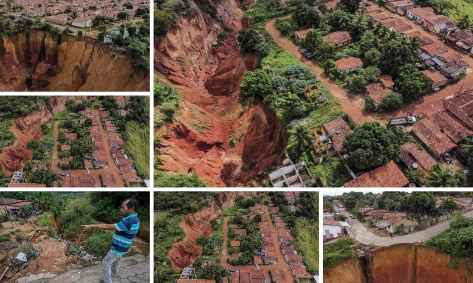 A quelques mètres d'un précipice, Deusimar Batista fait sécher ses vêtements au soleil. Autour de son jardin, dans une ville d'Amazonie brésilienne, il ne reste plus rien : la maison voisine a été engloutie dans un immense cratère en contrebas et sa rue est méconnaissable.