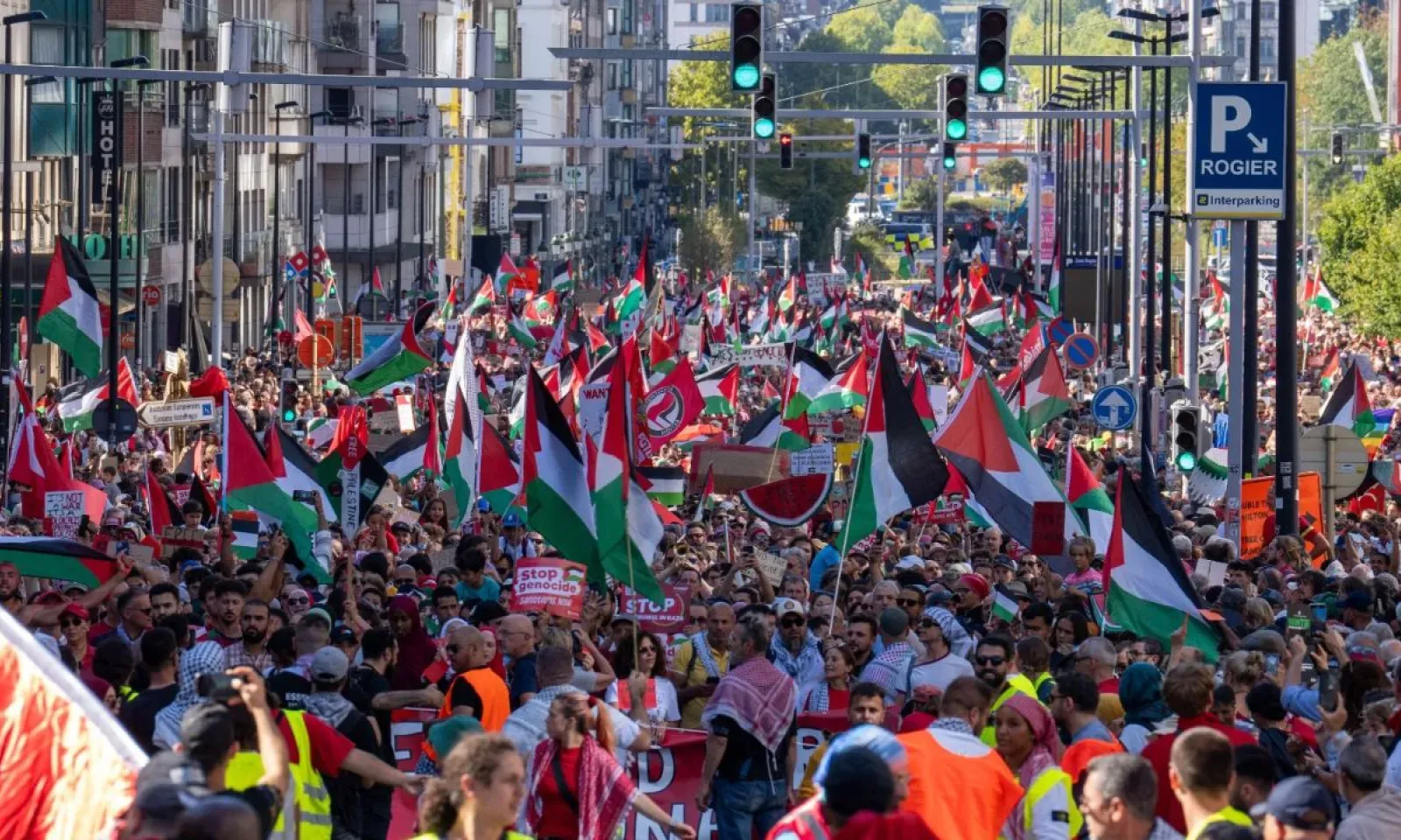 Des dizaines de milliers de personnes, entre 70.000 selon la police et 120.000 selon les organisateurs, ont défilé dimanche dans la capitale belge pour exprimer leur solidarité avec les Palestiniens.