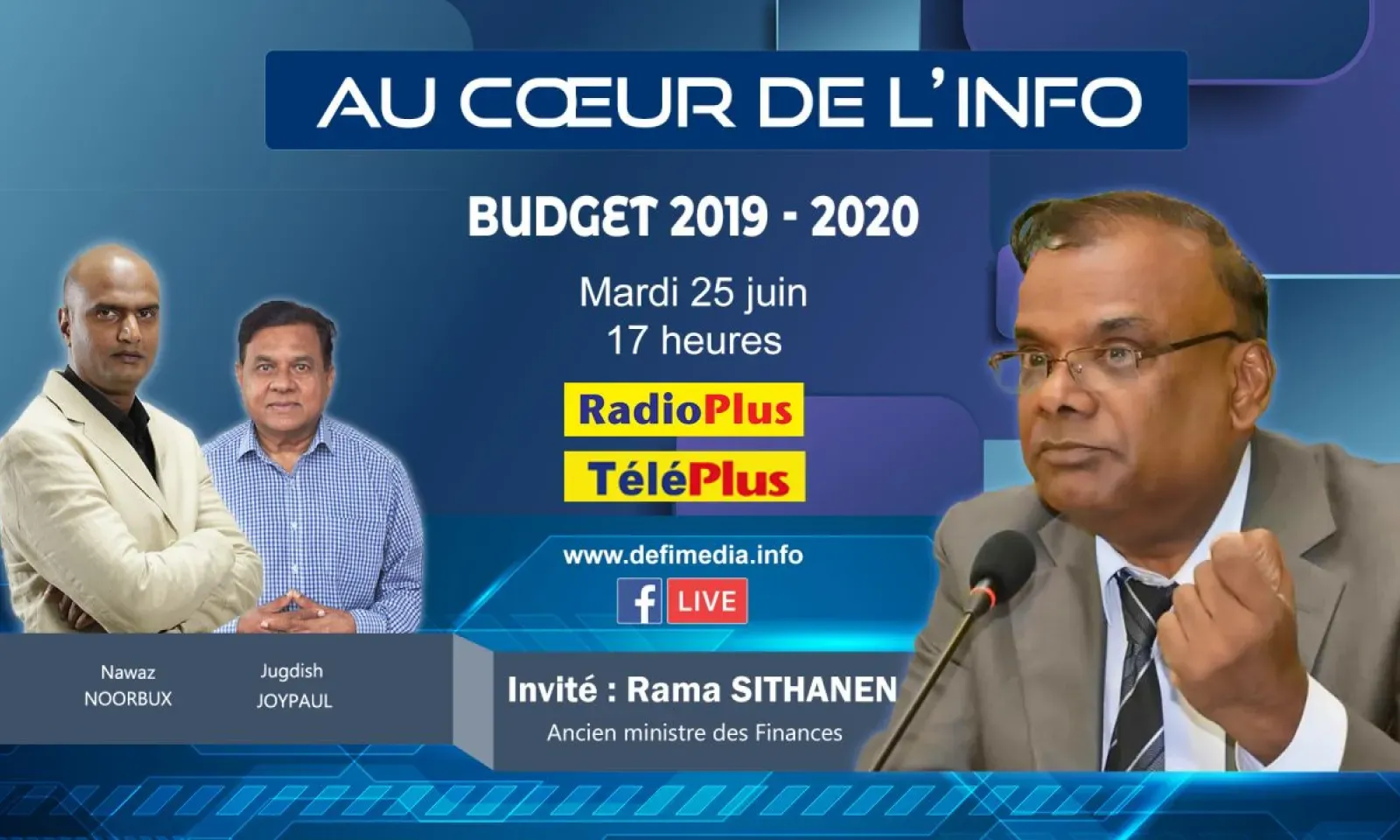 Rama Sithanen sera l'invité de Radio Plus ce mardi après-midi 25 juin. L’ex-ministre des Finances répondra aux questions de Nawaz Noorbux et de Jugdish Joypaul dans l’émission «Au Cœur de l’Info».