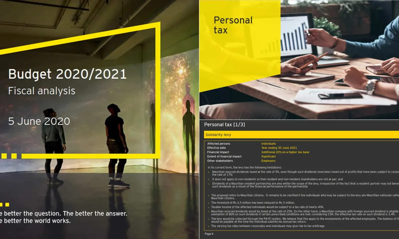 Image La société Ernst & Young livre ses premières analyses sur le Budget 2020-21, présenté jeudi 4 juin par le ministre des Finances, Renganaden Padayachy : Publicité View the discussion thread.