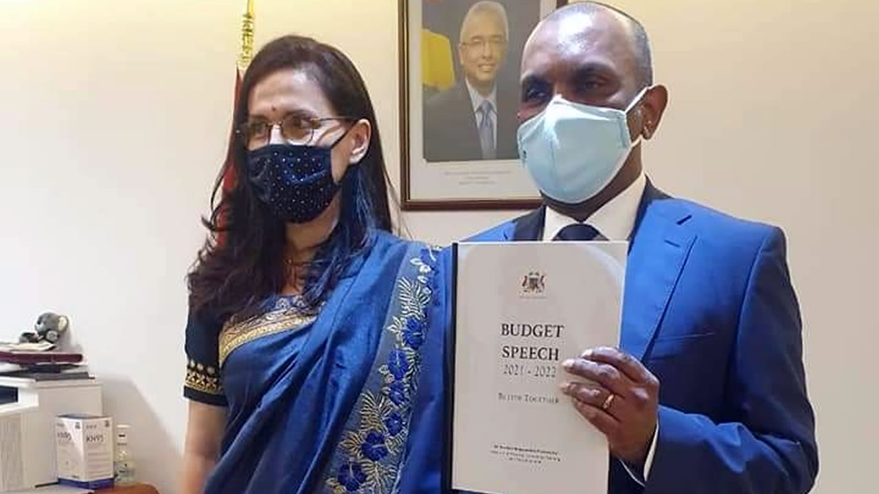 La sérénité se lit dans les yeux de Renganaden Padayachy, ministre des Finances. Il foule le tapis rouge de l’Assemblée nationale quinze minutes avant le coup d’envoi du discours budgétaire en ce vendredi 11 juin 2021. Il est en compagnie de son épouse Valérie Padayachy. Elle s’est drapée d’un sari bleu marine à la bordure dorée.