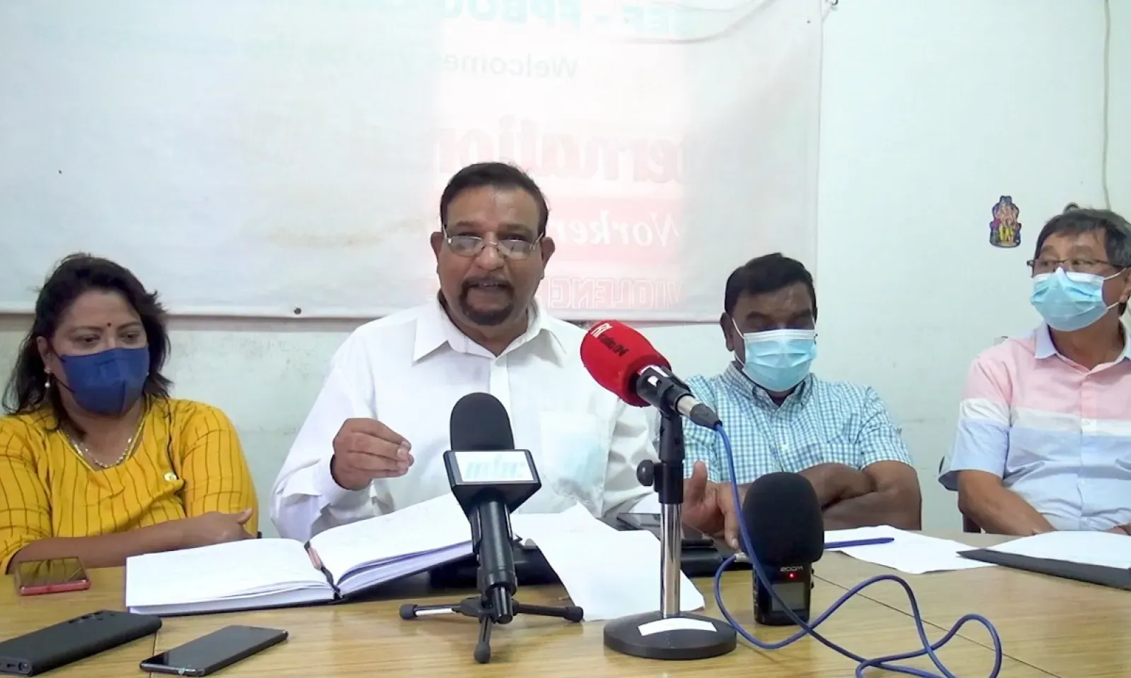 Plusieurs syndicalistes réagissent après la présentation du Budget 2022-23 mardi 7 juin. En conférence de presse, ce jeudi matin, 9 juin, le Congress of Independent Trade Unions (CITU) a déploré que le prix de l’essence n’ait pas été revu à la baisse.