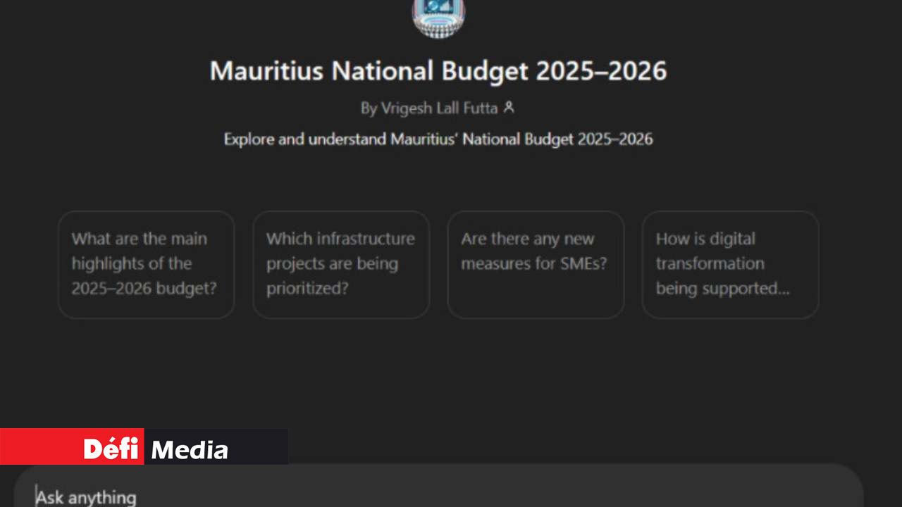 Le ministère de la Technologie, de la Communication et de l’Innovation a mis en place un chatbot interactif dans le cadre du Budget 2025–2026 afin de permettre aux citoyens de poser leurs questions et obtenir des informations sur les projets phares et les grandes mesures annoncées.