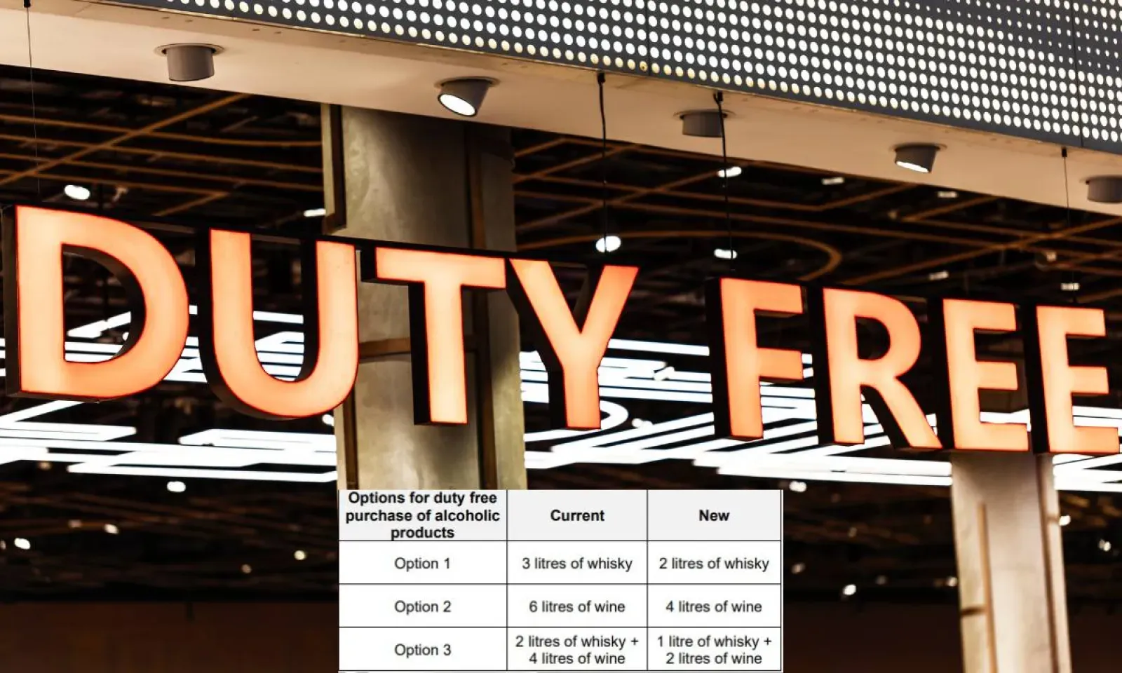 À partir du 1er septembre 2025, la franchise douanière (duty-free allowance) sur les produits alcoolisés accordée aux passagers à l’arrivée sera révisée. Les trois options actuellement en vigueur seront revues à la baisse comme suit :
