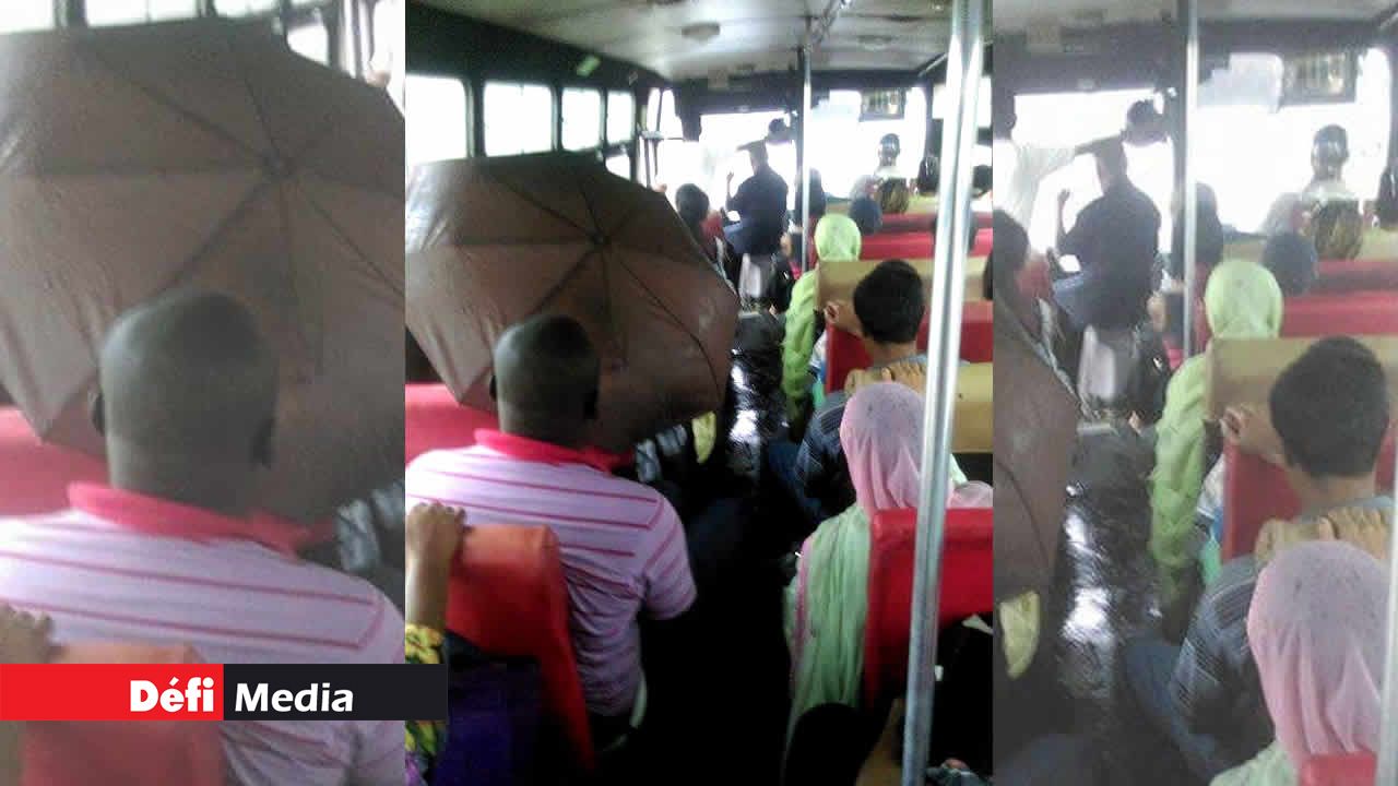 Ce n’est pas la première fois qu’un passager utilise son parapluie dans un bus à l’île Maurice pour se protéger contre les goutes d’eau.