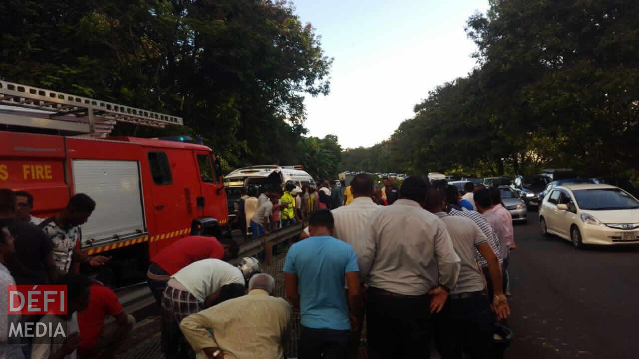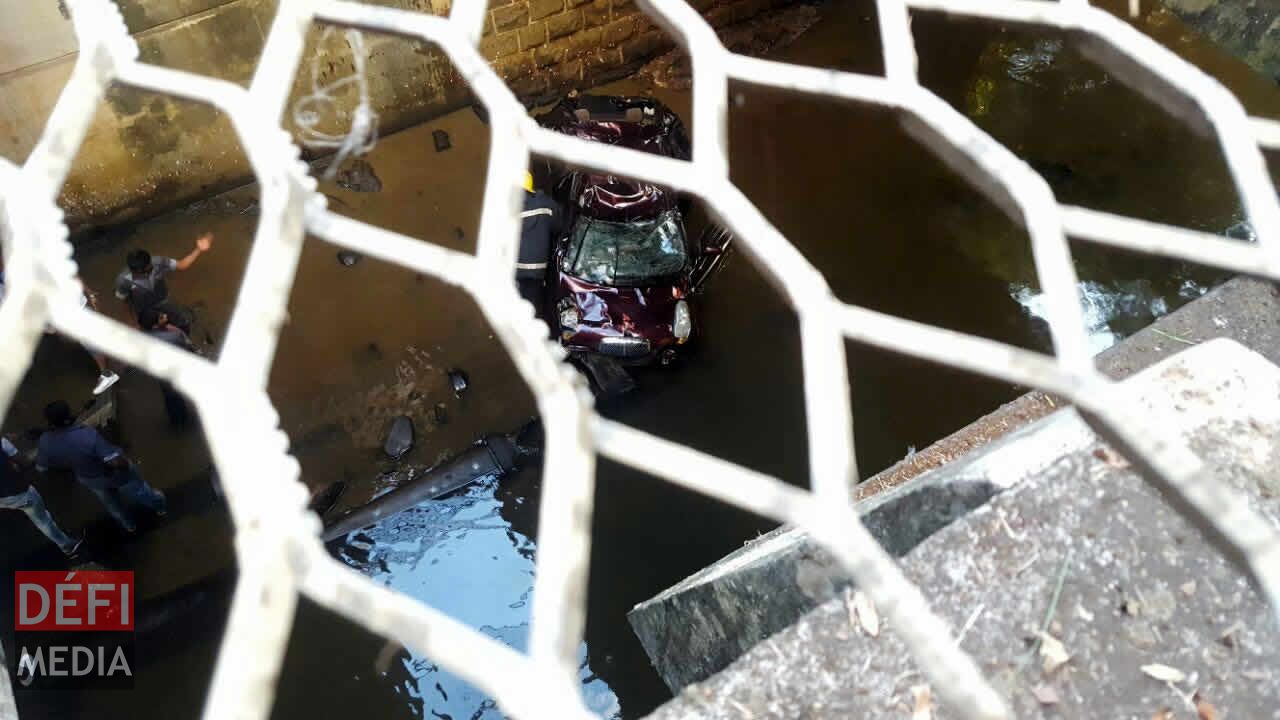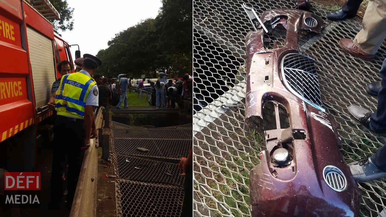 En arrivant à la New Trunk Road, Calebasses, entre le rond-point Beau-Plan et celui de Calebasses, la voiture a fait une violente sortie de route et a percuté un parapet avant de terminer sa course dans un canal se trouvant entre les deux voies de l’autoroute.
