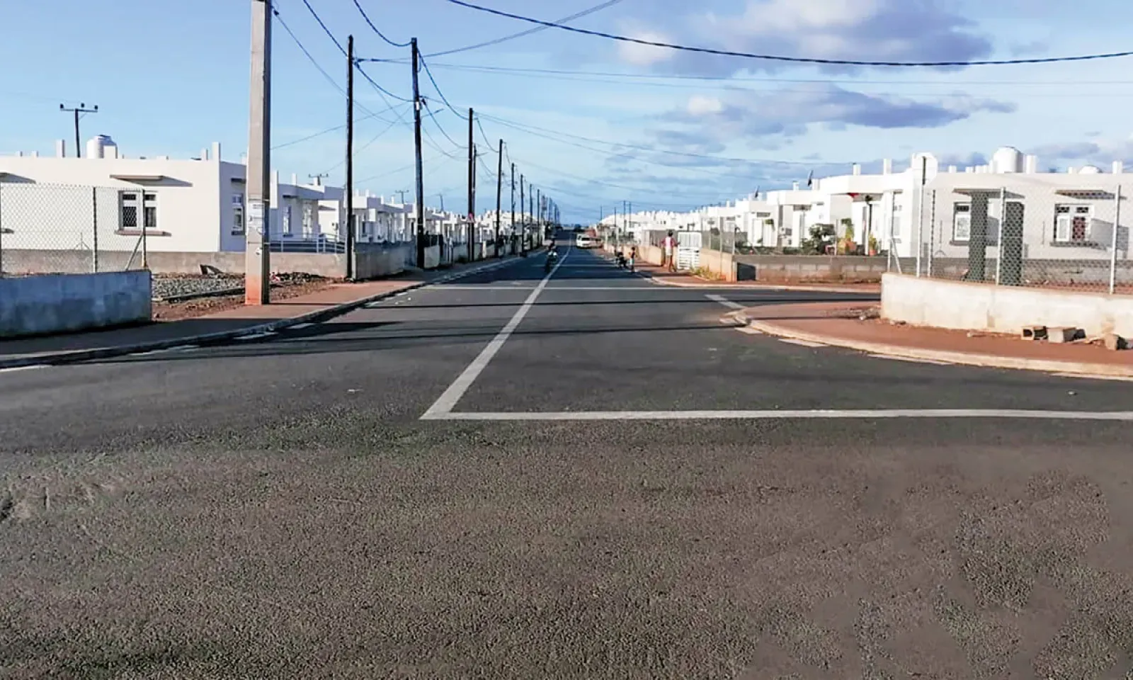 Dans ce lieu isolé, loin du centre de Bambous, l’atmosphère évoque celle d’un quartier délaissé. Les habitations s’alignent, identiques dans leur couleur, leur toiture et leur conception. Leur uniformité, semblable à un jeu de dominos, rend difficile toute orientation pour les visiteurs.