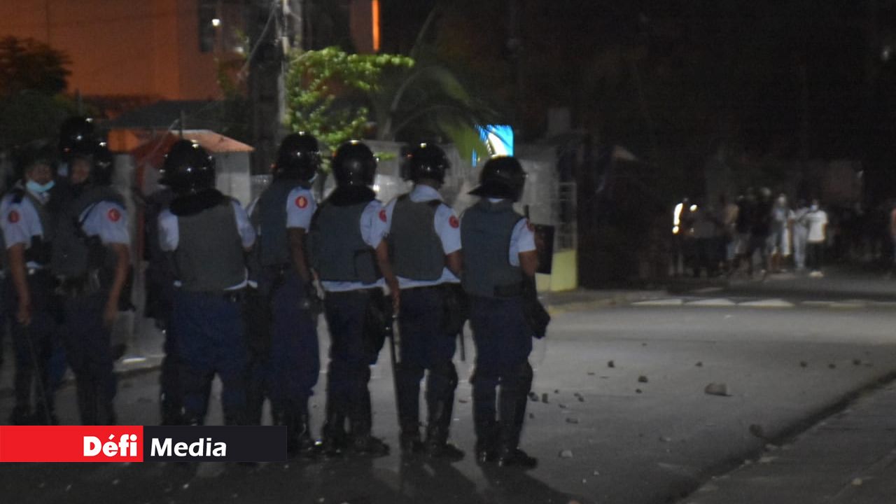 Les policiers ont fort à faire, ce mercredi soir 20 avril, face à une foule hostile rassemblée à Camp-Levieux. Des habitants protestent contre la hausse des prix des carburants.