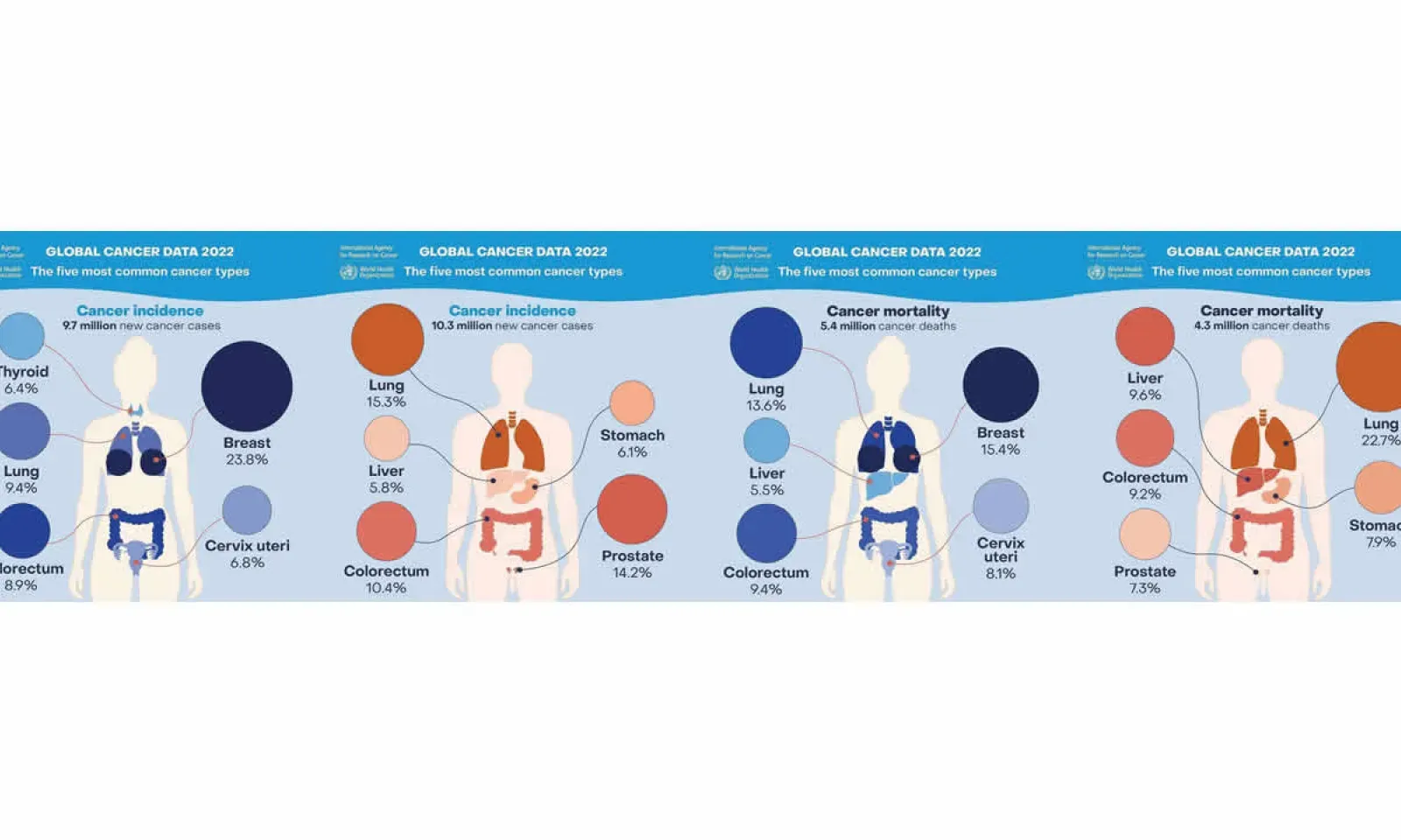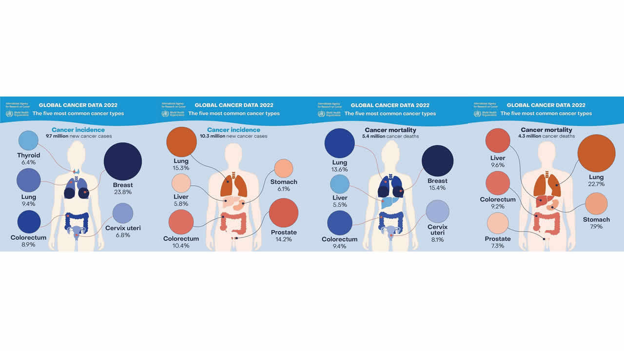 Sur le plan mondial, le cancer est responsable de 9,7 millions de décès, selon les estimations. Le ratio est d’un homme sur neuf et d’une femme sur 12, selon l’Organisation mondiale de la santé. L’organisation onusienne est également d’avis qu’une personne sur cinq fait face au cancer au cours de sa vie. Les chiffres indiquent également un total de 10,3 millions de nouveaux cas de cancer pour 2022 chez les hommes et 9,7 millions de nouveaux cas chez les femmes pour la même année (voir infographie).