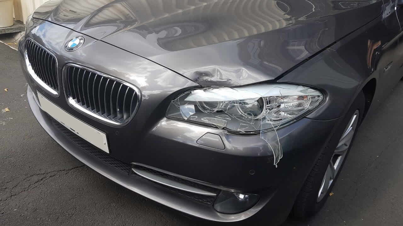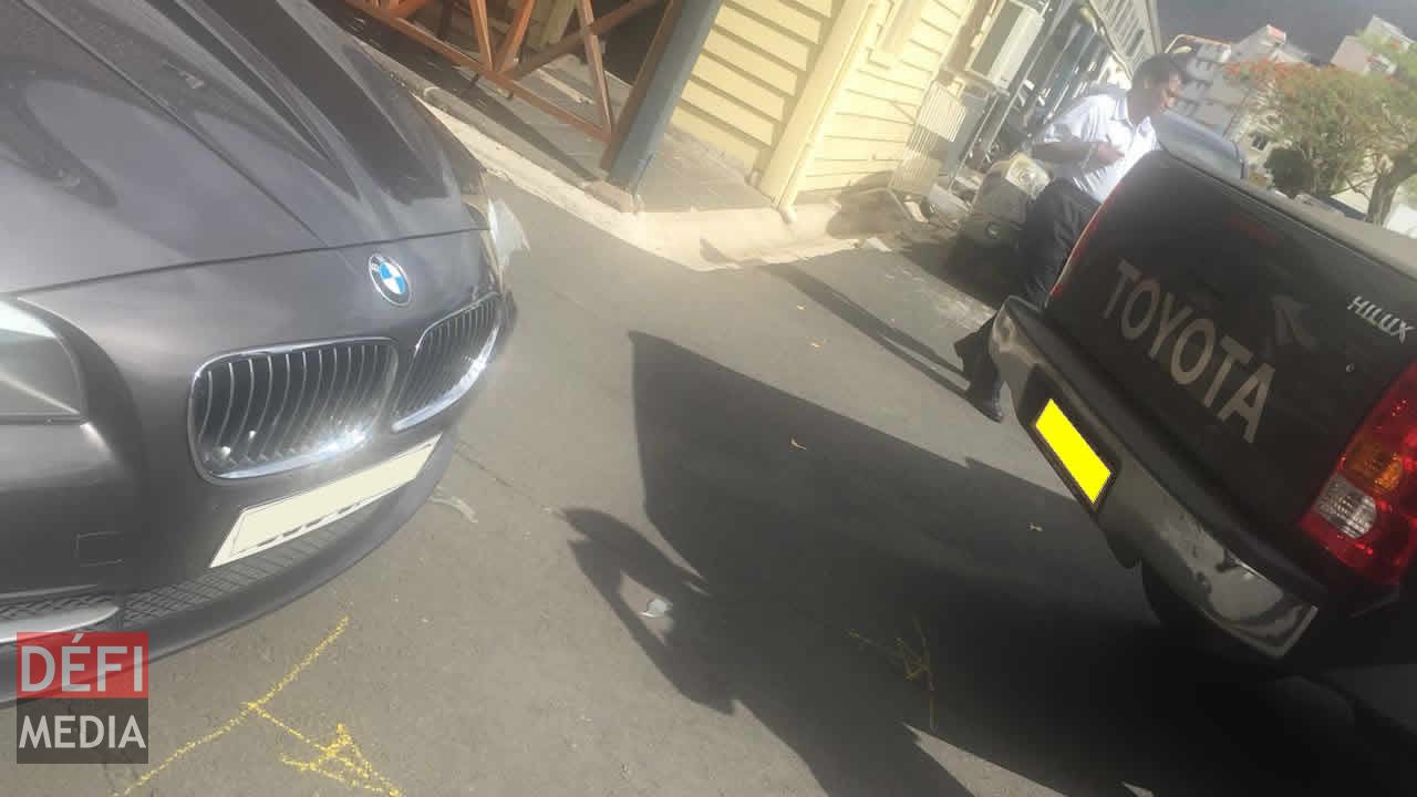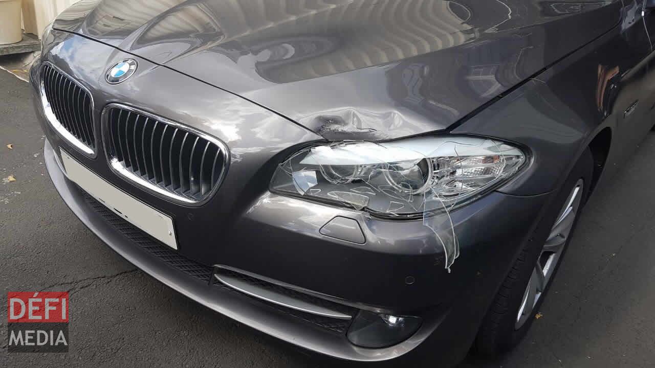 La BMW de Navin Ramgoolam a subi des dégâts au niveau du phare avant côté gauche.
