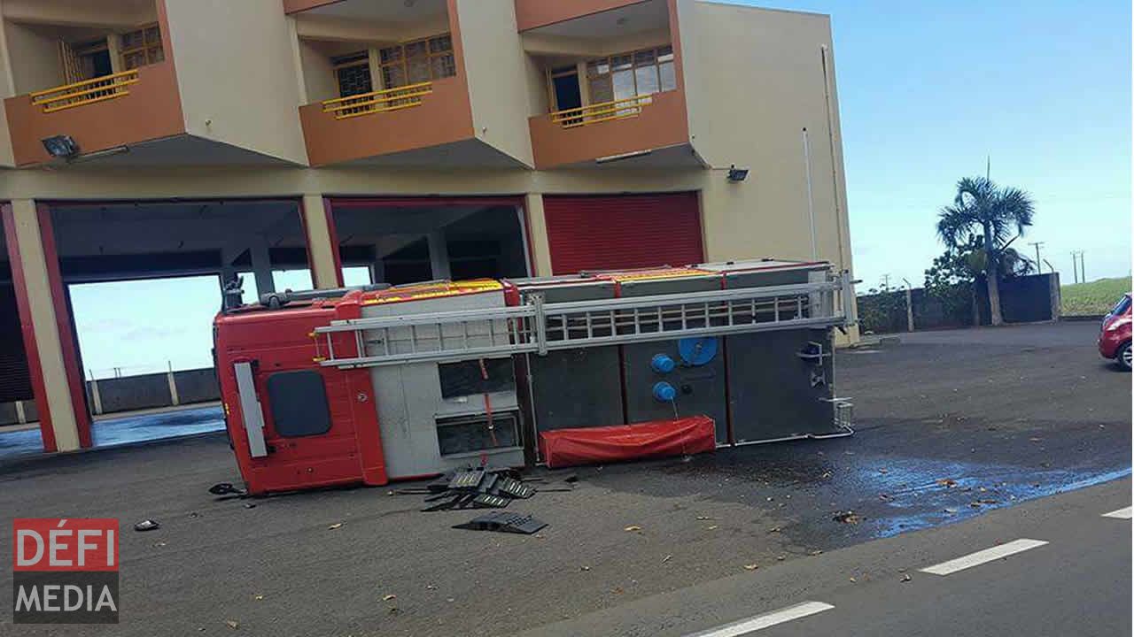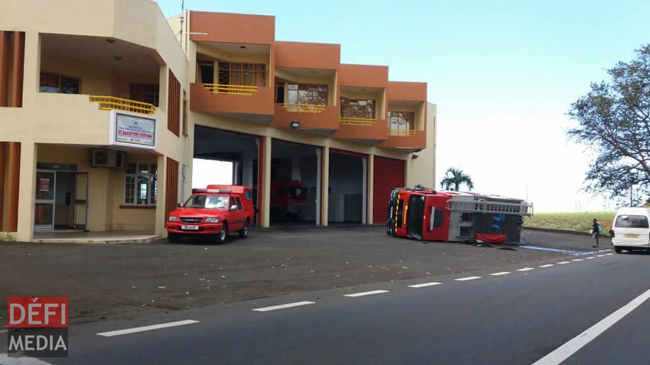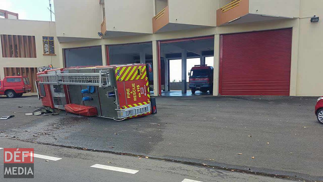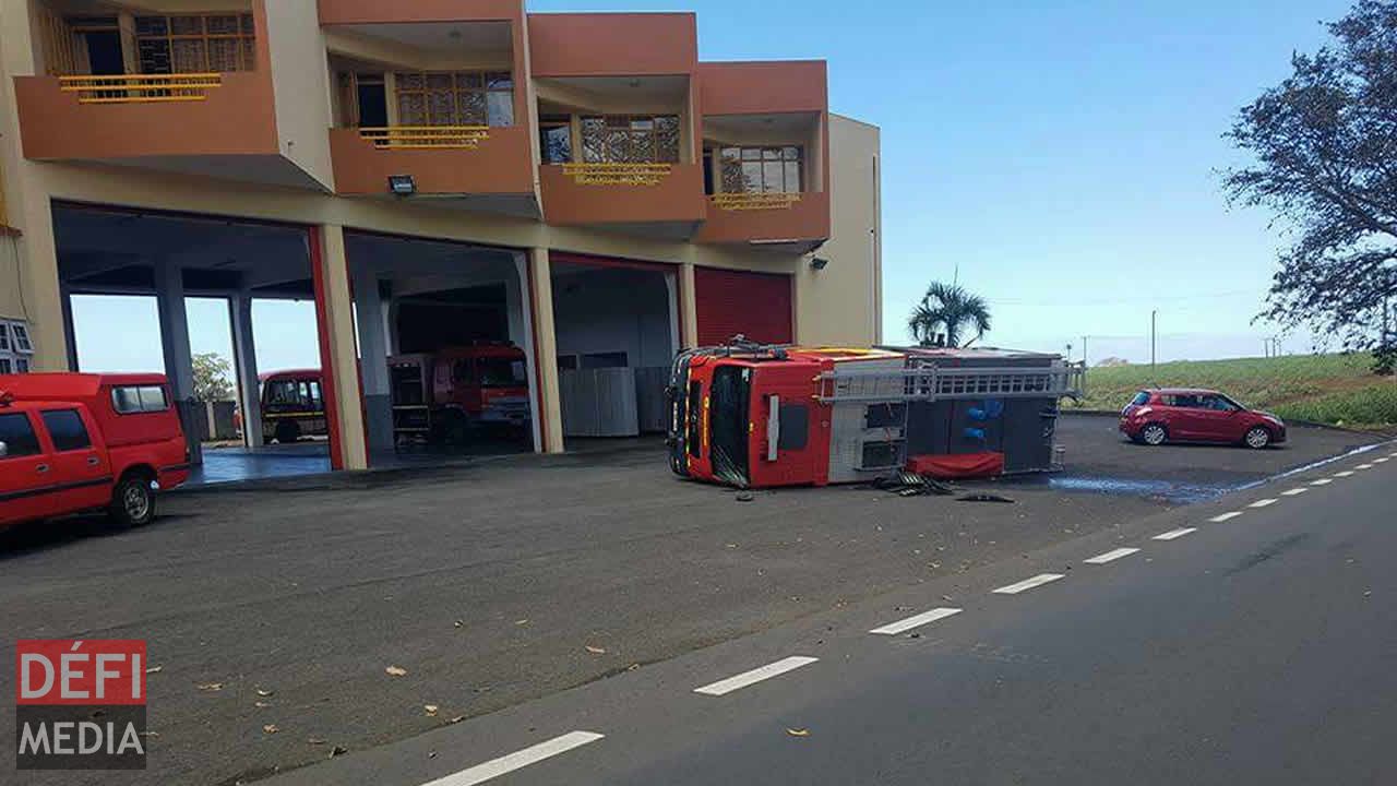 Un camion de pompier s’est renversé samedi après-midi 26 novembre devant les casernes de Saint-Aubin.