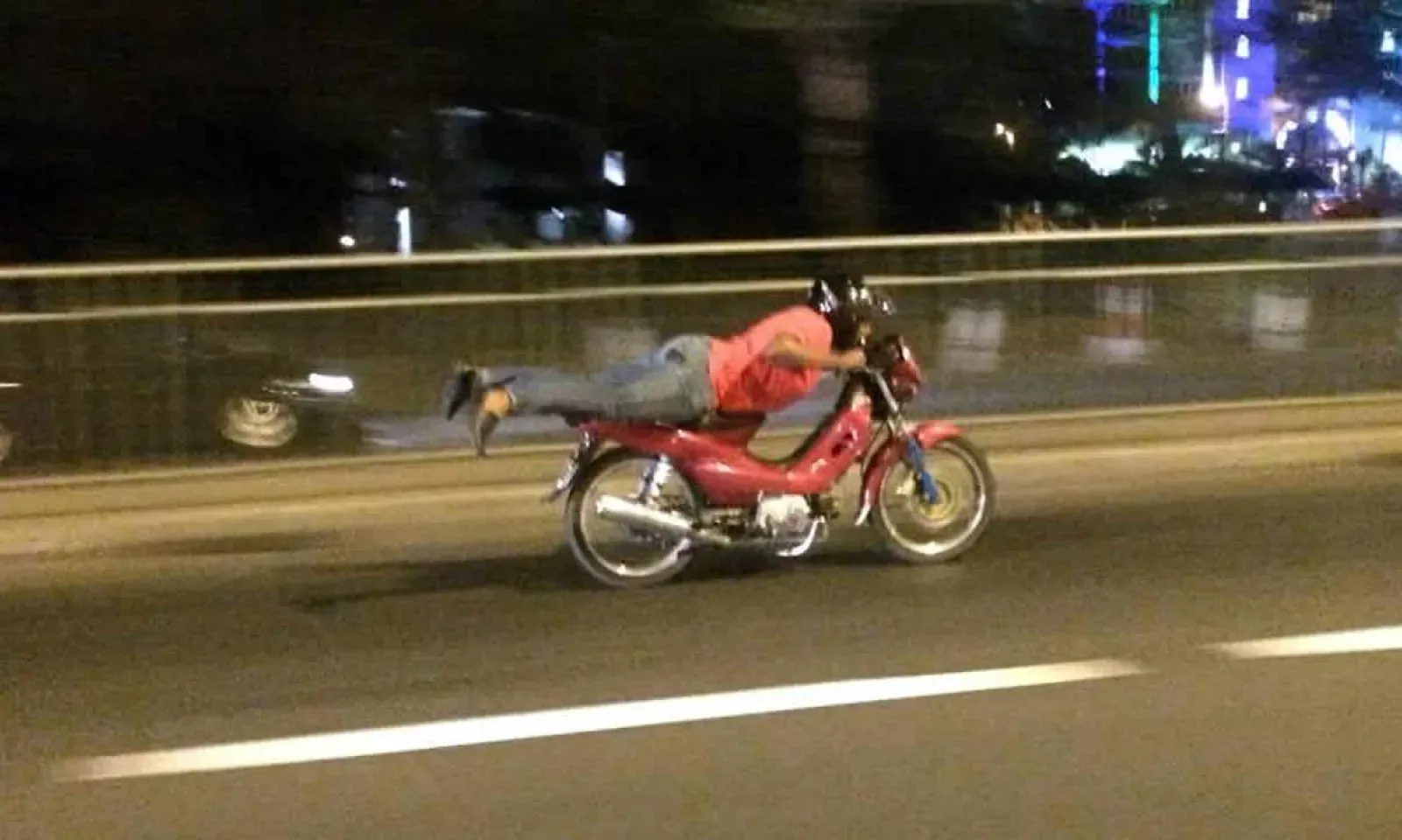 Une photo montrant un motocycliste en position allongée sur une Delta rouge fait actuellement le buzz sur le réseau social Facebook.