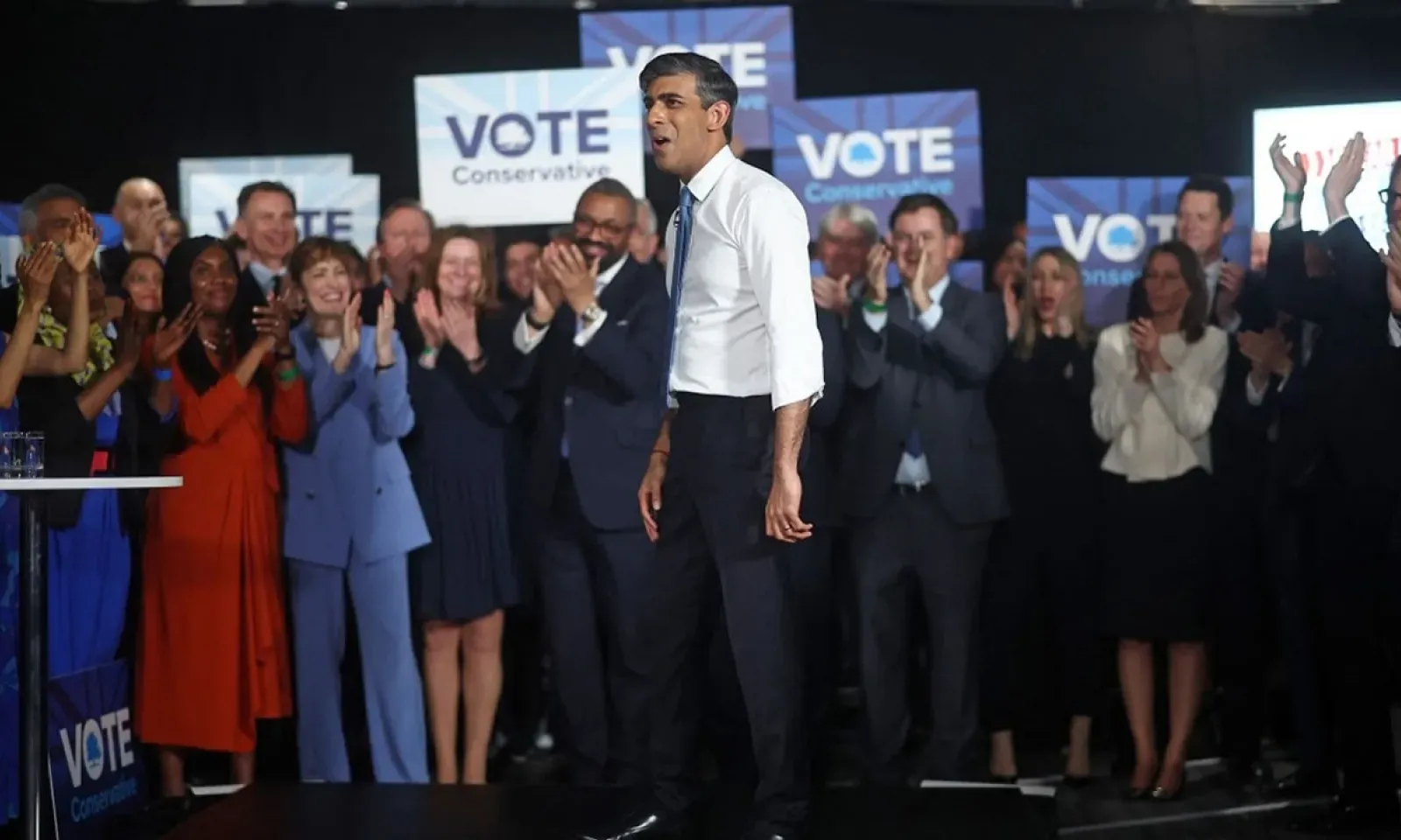 Le Premier ministre Rishi Sunak, également chef du parti conservateur, s'est exprimé sur le perron du 10, Downing Street pour annoncer avoir demandé à Charles III la dissolution du Parlement.