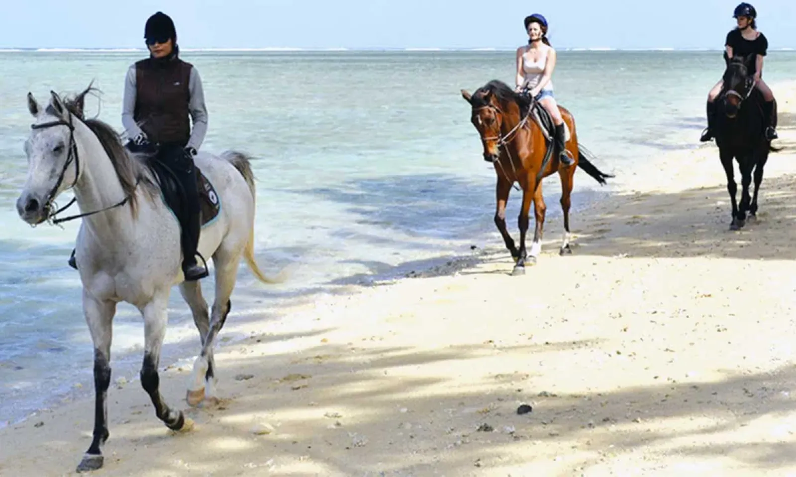 The horse rides are suitable as from age 6 and upwards. Inexperienced horse riders and children will be accompanied by one of the team members on foot. However, note that only experienced riders (riding for a few years), riding regularly (at least 1h/week), will be able to canter on the beach or swim with the horses. The price for an hour beach horse ride is at Rs1,500. Booking must be done at least 24 hours before.