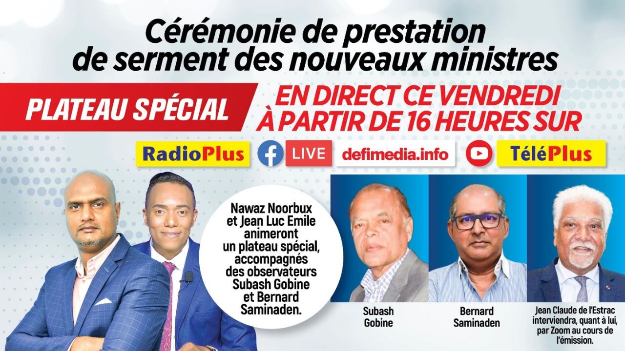 Suivez en direct la cérémonie de prestation de serment des nouveaux ministres ce vendredi à partir de 16 heures sur Radio Plus et les plateformes digitales du Défi Media Group.
