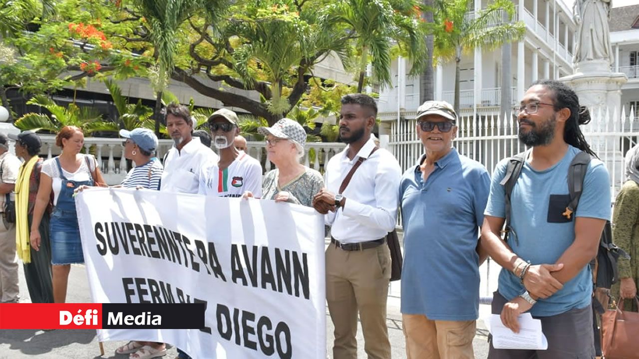 Les membres de Lalit ont manifesté contre le maintien de la base militaire américaine à Diego Garcia, un des atolls de l’archipel de Chagos, ce mercredi matin devant la Government House, Port-Louis.