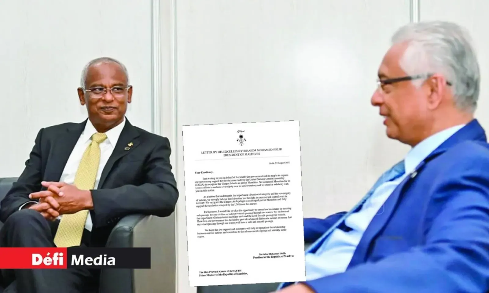 Pour rappel, le 22 mai 2019, l’Assemblée générale des Nations Unies avait, avec une majorité de 116 pays contre six, voté en faveur de Maurice et avait demandé au Royaume-Uni de rendre l’archipel au plus vite à Maurice. Seuls six pays avaient voté contre, dont les Maldives. Les autres étaient l’Australie, la Hongrie, Israël, le Royaume-Uni et les États-Unis. Or, à la surprise de tous, y compris au niveau de la majorité gouvernementale de ce pays, les Maldives décident de soutenir Maurice dans sa revendication contre toute attente à travers cette lettre envoyée à Pravind Jugnauth.