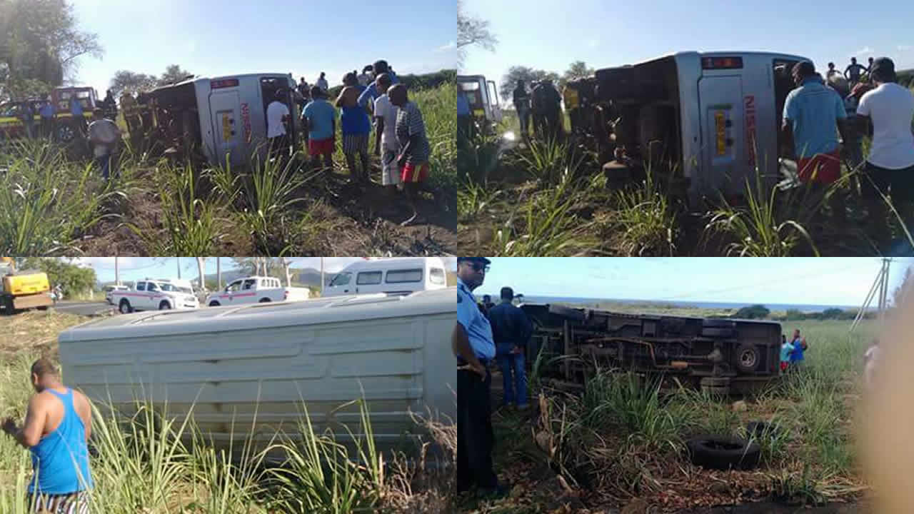 Un accident de la route s'est produit à Chemin-Grenier ce samedi matin 23 décembre. Un bus transportant des employés de l'usine Firemount s'est renversé dans un champ de canne.
