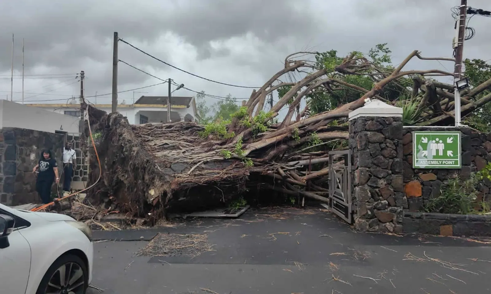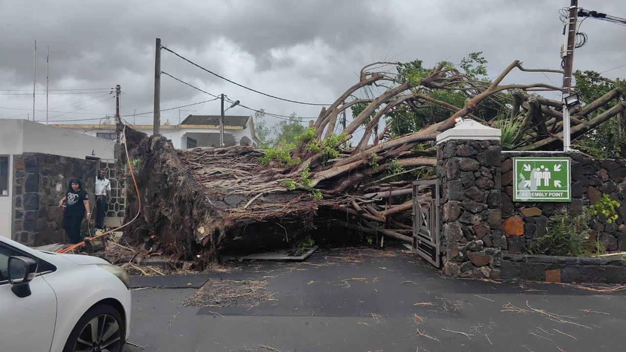 Les fortes rafales associées à Belal ont provoqué la chute d'arbres un peu partout à travers le pays. Ici, à l'hôtel Villas Caroline, à Flic-en-Flac, un arbre, qui n’a pas résisté aux assauts du cyclone, a bloqué l'entrée de l'établissement hôtelier.