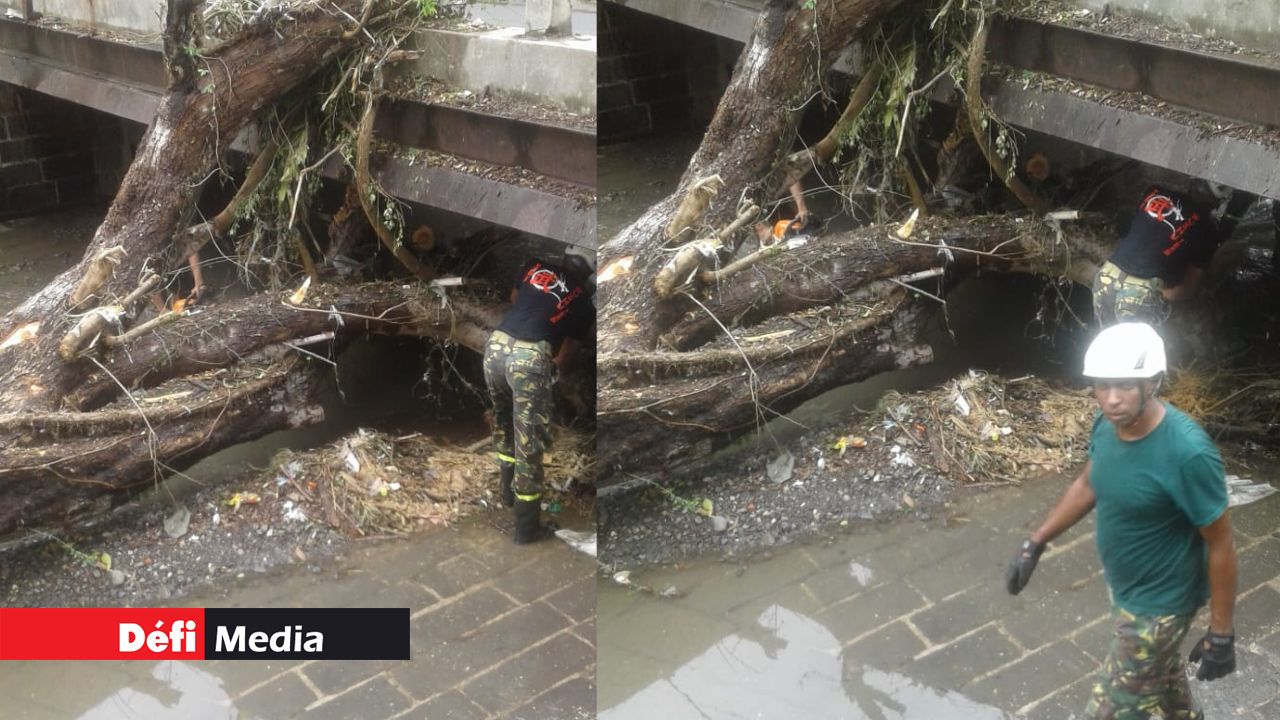 Un arbre a chuté à la hauteur du Ruisseau du Pouce, Port-Louis, à la suite des intempéries qui ont frappé le pays jeudi et vendredi.