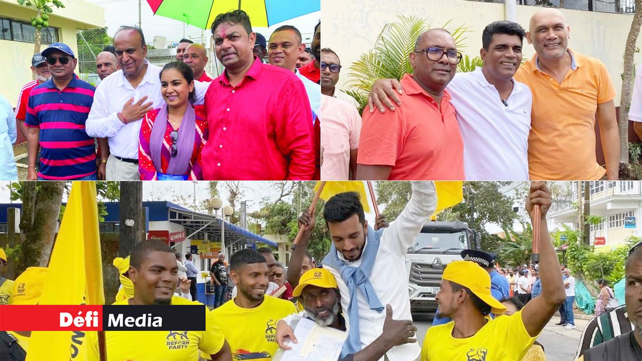 C’est aux alentours de midi que Roshan Jhummun, Rubna Daureeawo et Rajen Narsinghen sont, en effet, arrivés, accompagnés de leurs partisans au son des tambours et des ravannes, vêtus des couleurs de leur alliance : rouge, mauve, bleu et jaune. Pour Roshan Jhummun, sa décision de démissionner de son poste de Deputy Rector afin de rejoindre la politique a été, entre autres, motivée par la mauvaise gestion du gouvernement sortant, surtout dans le domaine de l’éducation.
