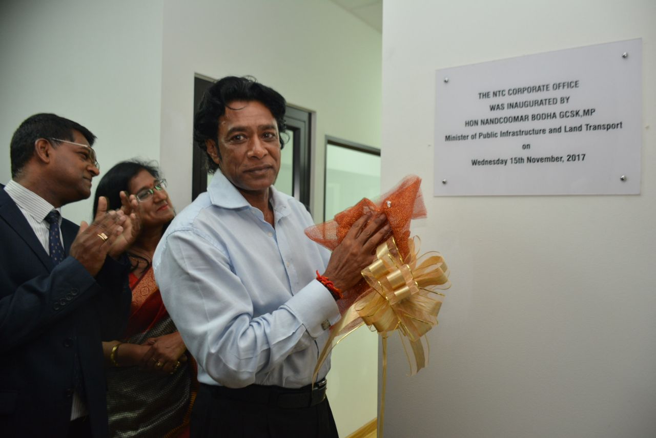 «La National Transport Corporation sera appelée à être la colonne vertébrale du New National Transport Network avec l’arrivée du Metro Express», a affirmé Nando Bodha lors du dévoilement du nouveau logo et de l’inauguration d’un nouveau dépôt de la CNT à Ébène, mercredi 15 novembre.