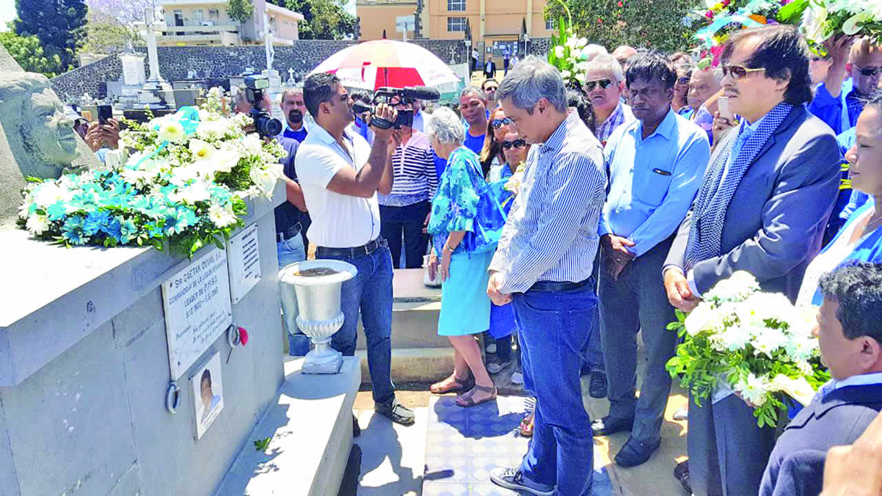 L’acteur indien Sanjay Khan s’est rendu au cimetière de St Jean pour un dépôt de gerbes sur la tombe de sir Gaëtan Duval. « C’est difficile de le décrire en un mot. C’était un bon vivant. Il avait l’habitude de célébrer tous les jours qu’il vivait avec ses amis. Je me rappelle très bien de lui. Son souhait le plus cher était de voir Maurice arriver à des sommets. C’était un vrai leader. Je l’ai toujours admiré », a déclaré Sanjay Khan.