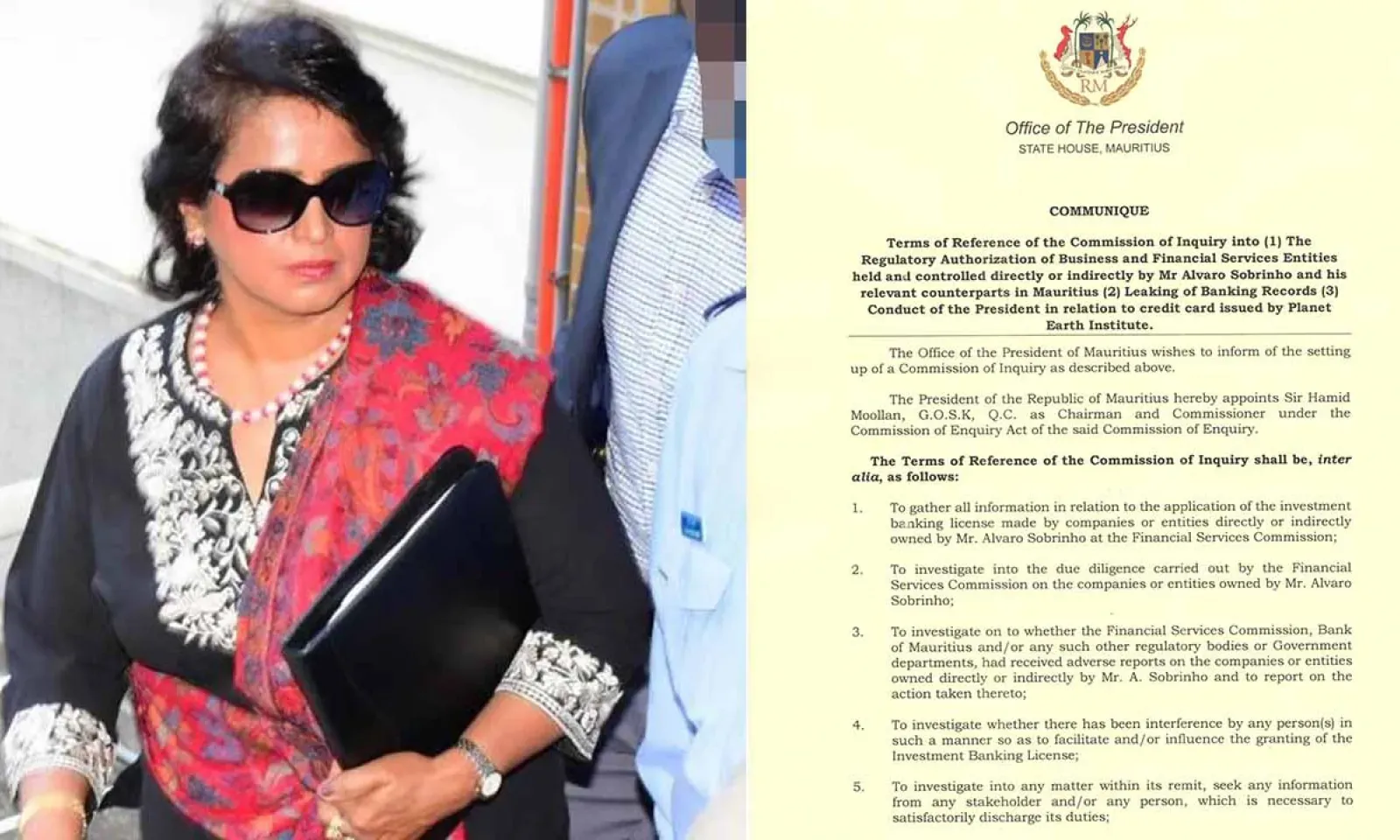 Les terms of reference de la Commission d'enquête institutée par Ameenah Gurib-Fakim :