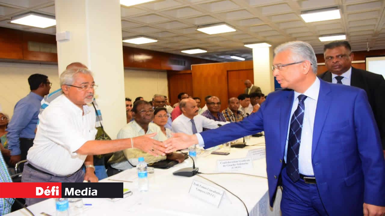 Le comité tripartite pour décider du quantum de la compensation salariale a lieu à l’hôtel du gouvernement ce jeudi 6 décembre. La réunion est présidée par le Premier ministre et ministre des Finances, Pravind Jugnauth, en présence du ministre du Travail, Soodesh Callichurn. Le numéro 2 du gouvernement, Ivan Collendavelloo, le ministre de la Fonction Publique, Eddy Boissezon, le ministre du Commerce, Ashit Gungah sont également présents.
