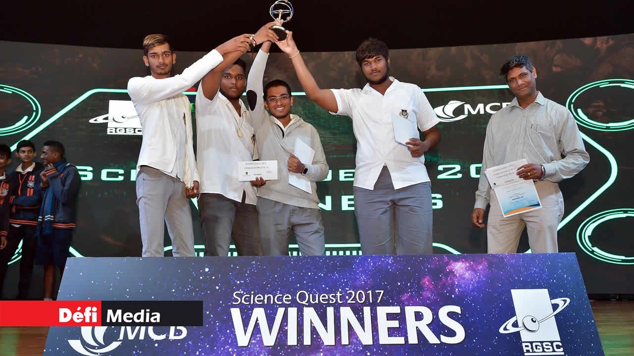 Ce sont les collèges Royal College de Curepipe, Lycée des Mascareignes et Sookdeo Bissoondoyal SSS qui ont brillé au cours de la compétition Science Quest 2017. Organisé par le Groupe MCB, le concours, qui avait attiré 400 élèves du secondaire, vise à promouvoir la science et l’innovation. La finale de la 4e édition de Science Quest s’est déroulée, les 30 et 31 mai, au Rajiv Gandhi Science Centre. La cérémonie de remise des prix s’est tenue mardi à l’auditorium Octave Wiehé, à Réduit.