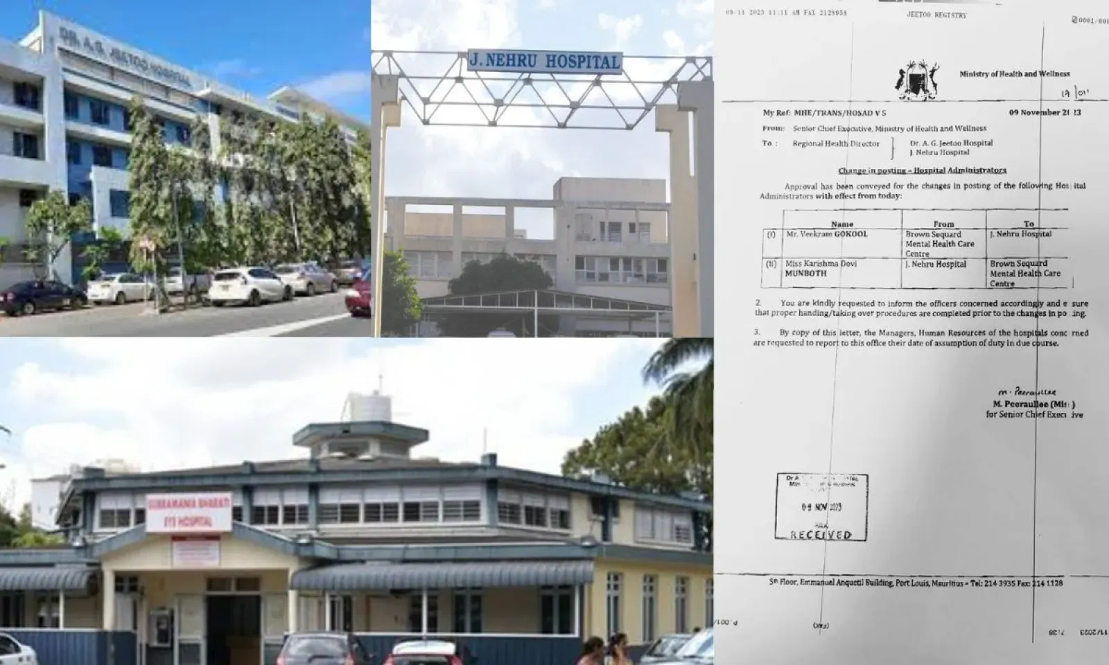 L’administrateur de l’hôpital Brown-Séquard, Veekram Gokool, a été transféré à l’hôpital J. Nehru. L’administratrice de l’hôpital de Rose-Belle, Karishma Devi Munboth, a, elle, été transférée vers l’établissement de Beau-Bassin.
