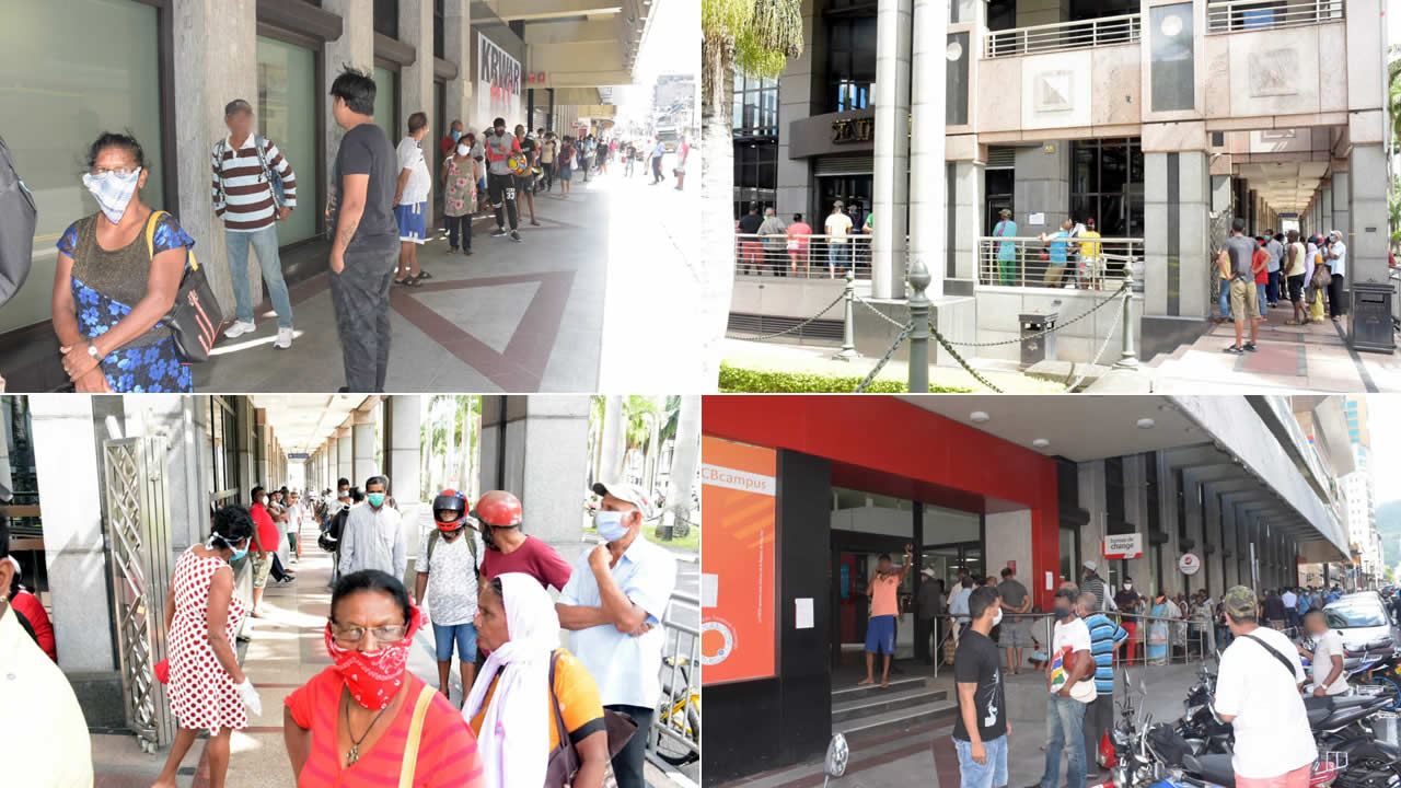 Si vous avez des sorties jugées essentielles à faire et si vous voulez effectuer des transactions bancaires, ce lundi, vous devez prendre votre mal en patience. Les ATM notamment ceux de la Mauritius Commercial Bank (MCB) et de la State Bank of Mauritius à Port-Louis étaient pris d’assaut par de nombreux clients à la mi-journée. De longues files d’attente devant les ATM comme en témoignent les photos, surtout qu'on est à la fin du mois.