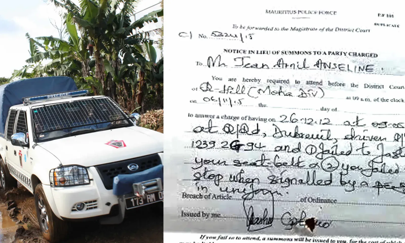 Mercredi dernier, Arnil Anseline, un mécanicien de Dubreuil, se trouvait sur son lieu de travail. Le facteur lui remet une lettre. Mauvaise nouvelle : Arnil a écopé d’une contravention pour pour ceinture de sécurité non bouclée constatée, selon le document, le 26 décembre 2012, vers 9h05, lors d’un contrôle policier. Le comble, affirme-t-il à l’antenne de Radio Plus, c’est qu’il ne souvient pas avoir été interpellé par la police pour ce délit.