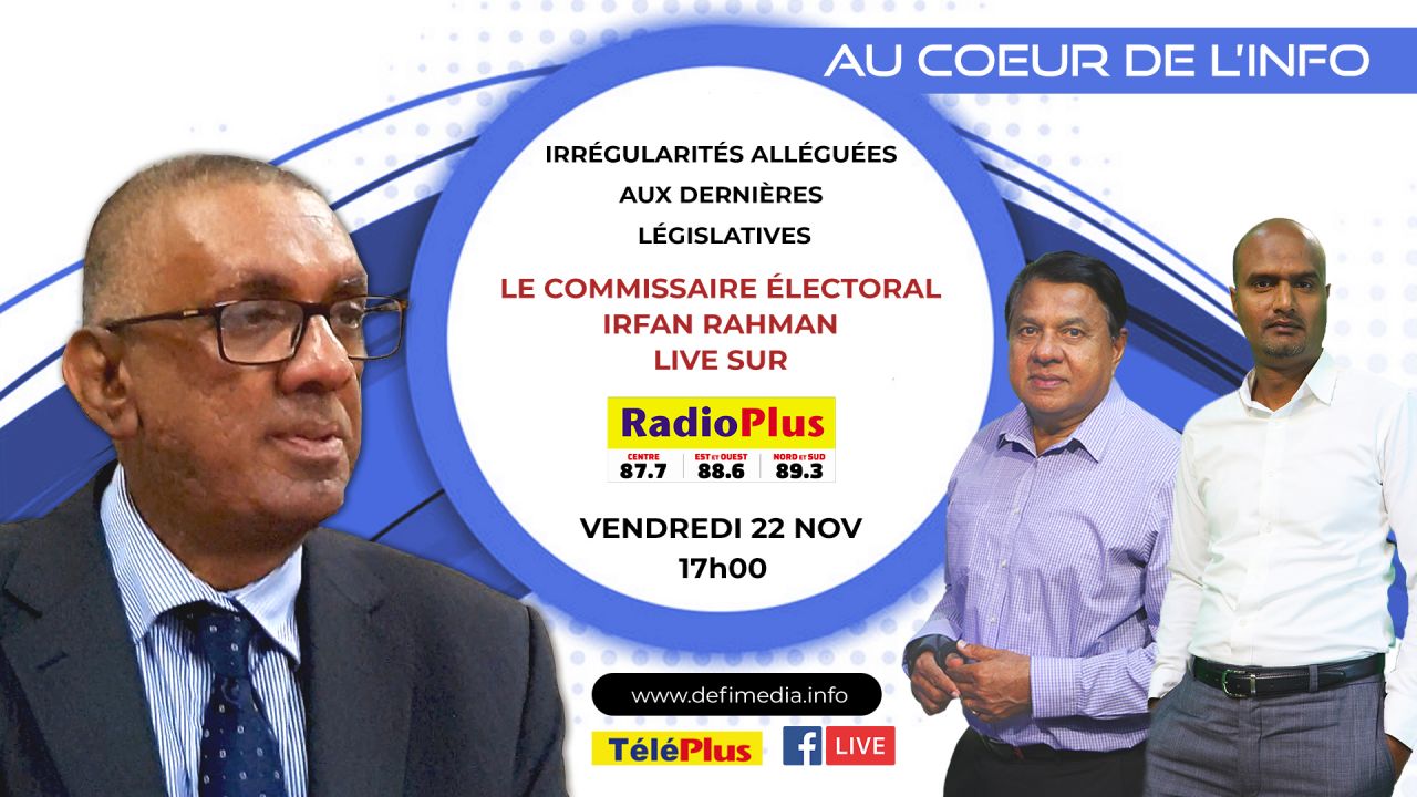 Le Commissaire électoral Irfan Rahman sera en direct dans le studio de Radio Plus ce vendredi 22 novembre à partir de 17 h. Il répondra aux questions de Nawaz Noorbux et de Jugdish Joypaul.